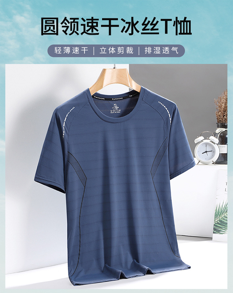 플러스 사이즈 남자 반팔 티셔츠 남자 2025 뉴 라운드 넥 아이스 실크 티셔츠 여름 얇은 스포츠 캐주얼 탑 옷