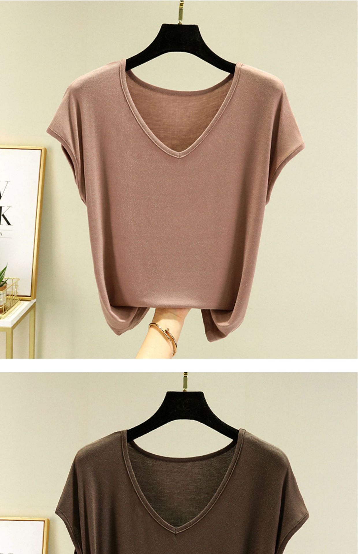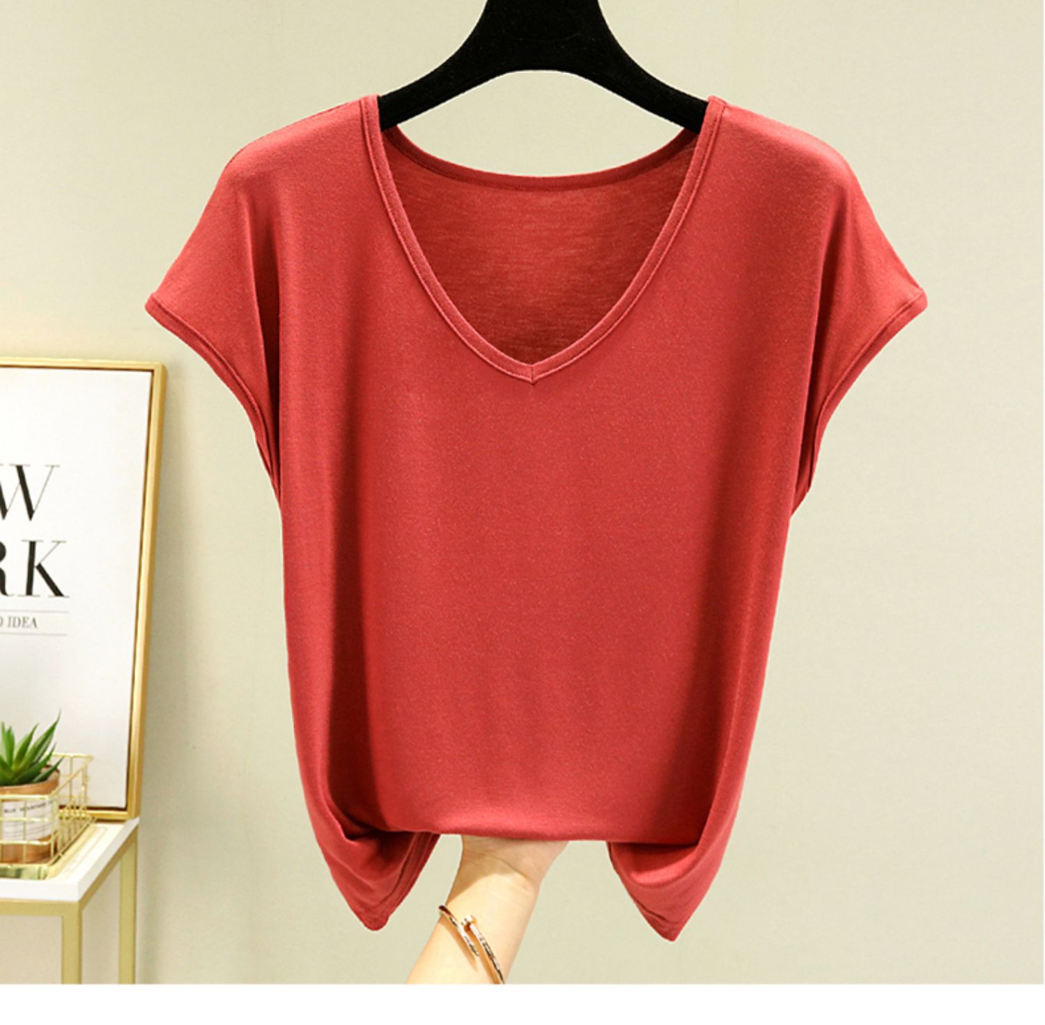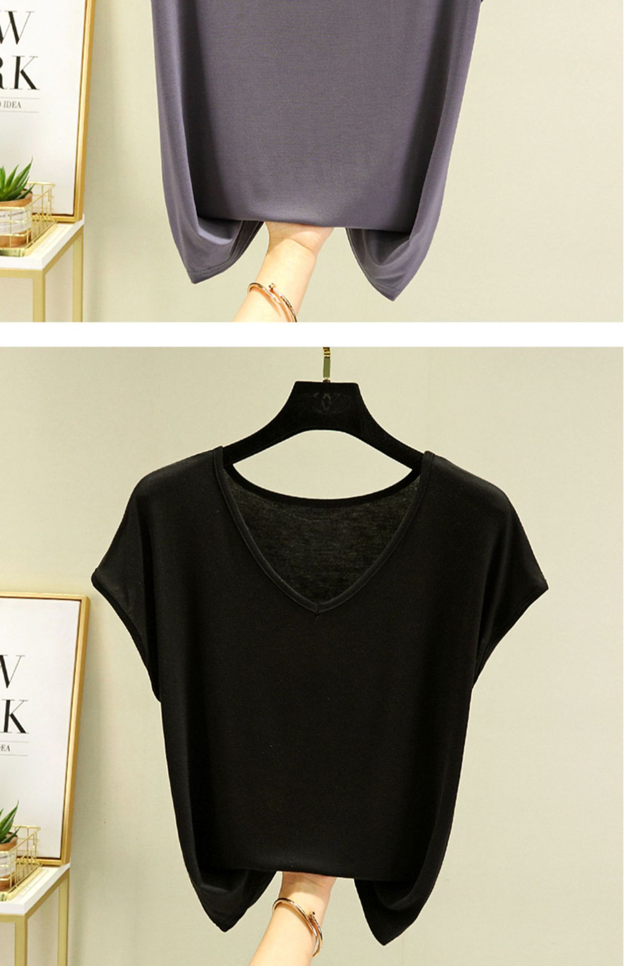 모달 민소매 조끼 여성 여름 플러스 사이즈 느슨한 V-목베이스 반팔 티셔츠 외부 착용 얇은 내부 캐주얼 탑