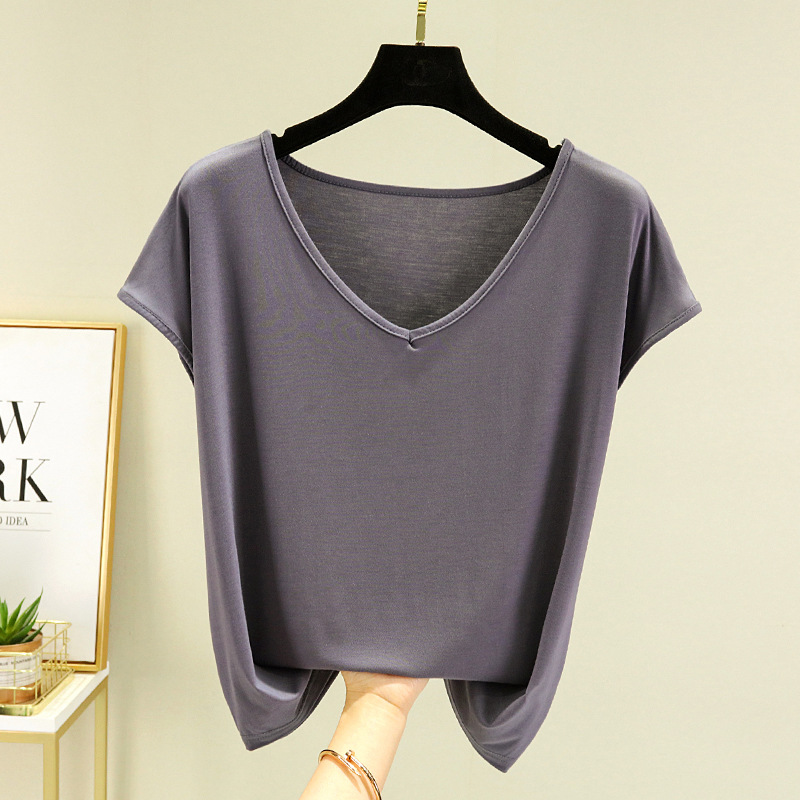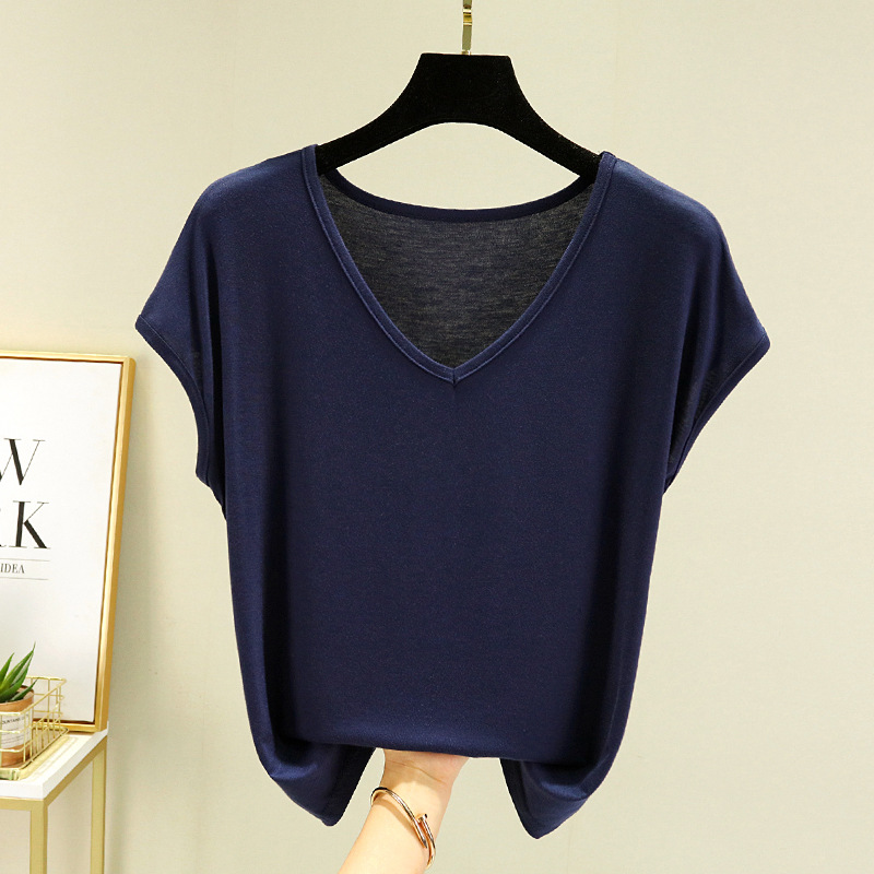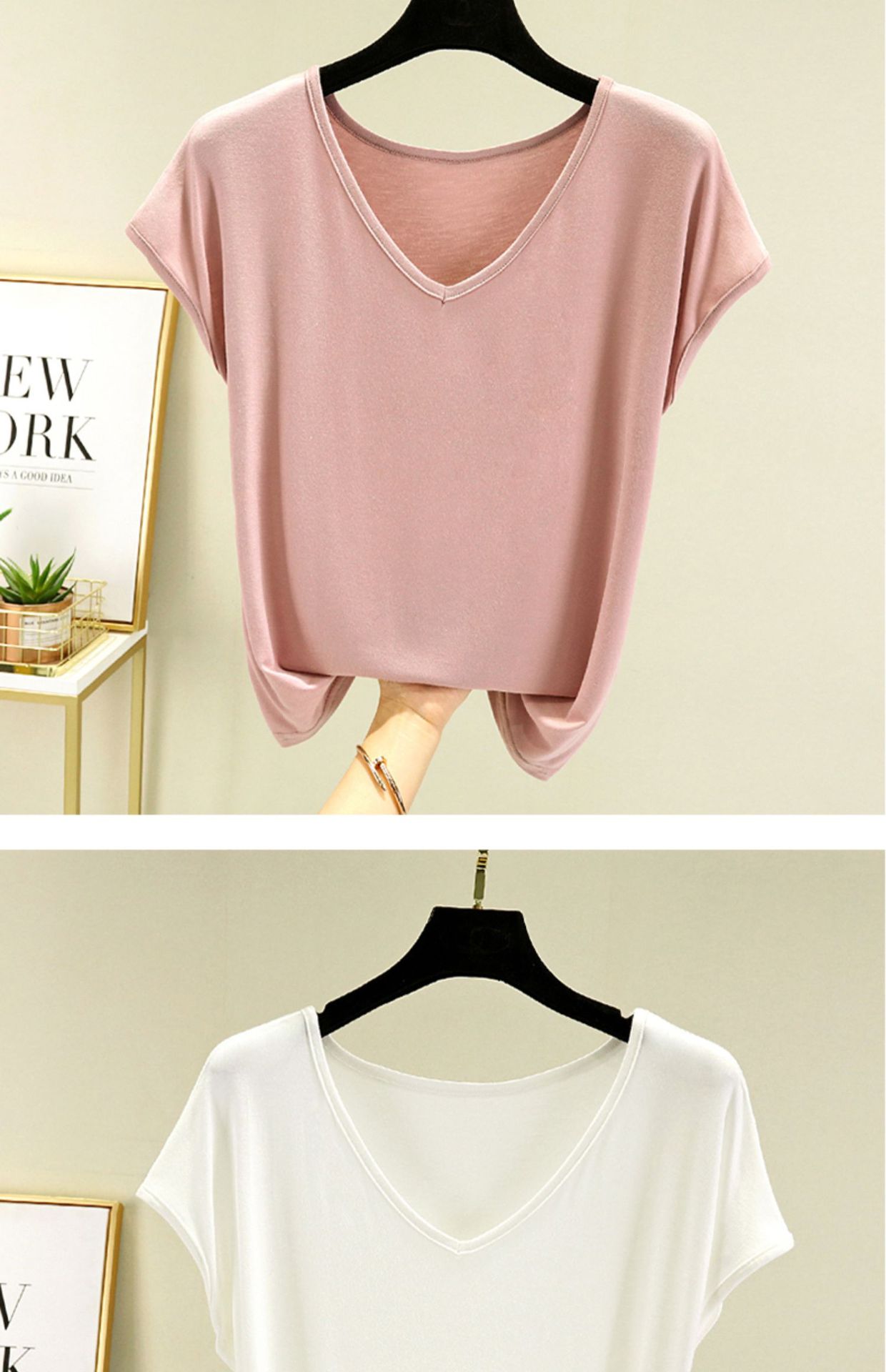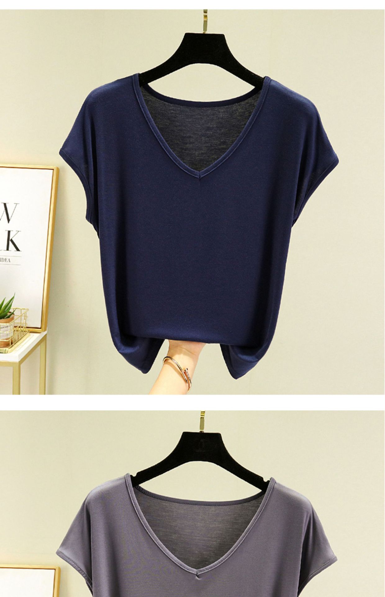 모달 민소매 조끼 여성 여름 플러스 사이즈 느슨한 V-목베이스 반팔 티셔츠 외부 착용 얇은 내부 캐주얼 탑