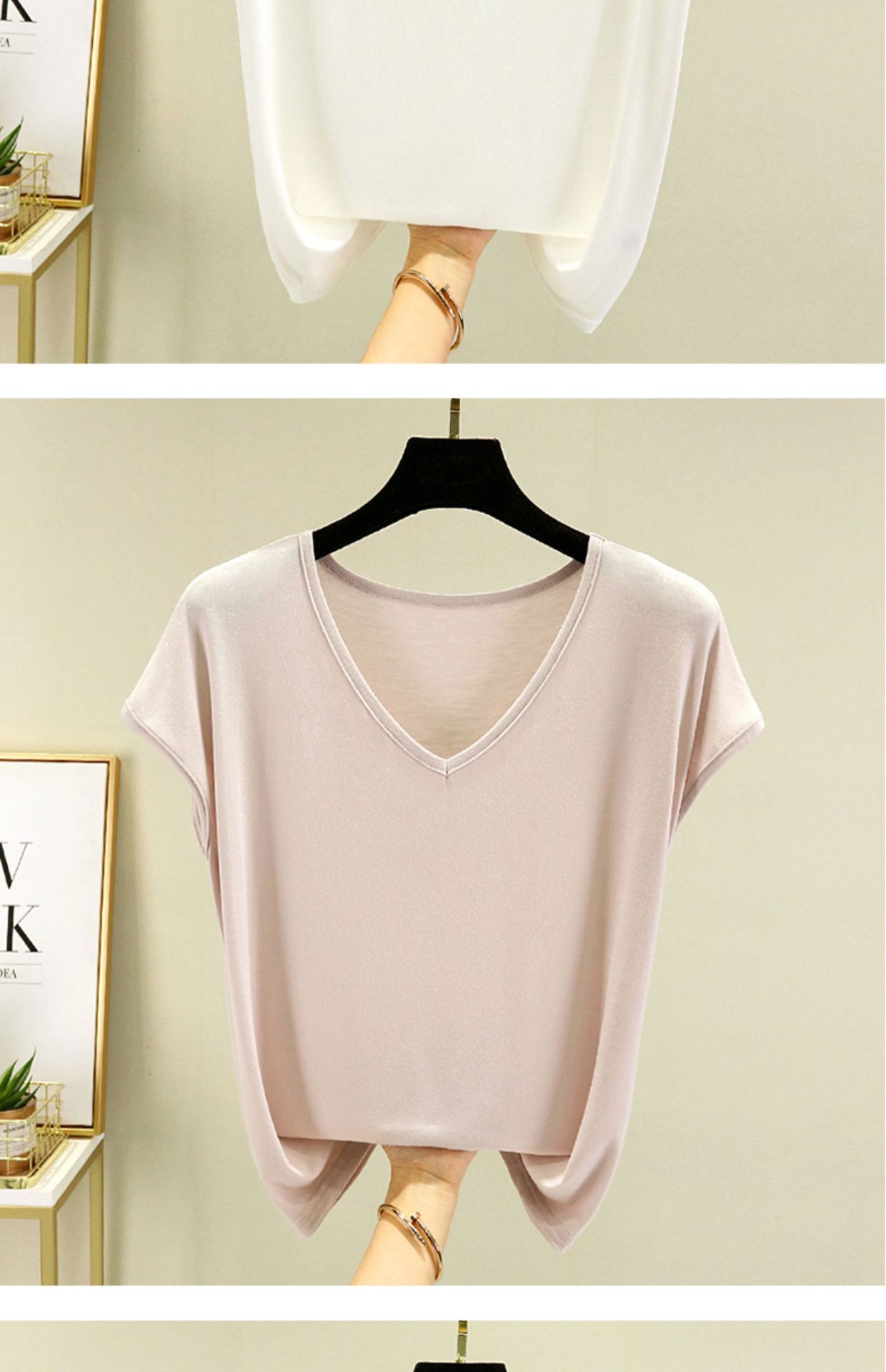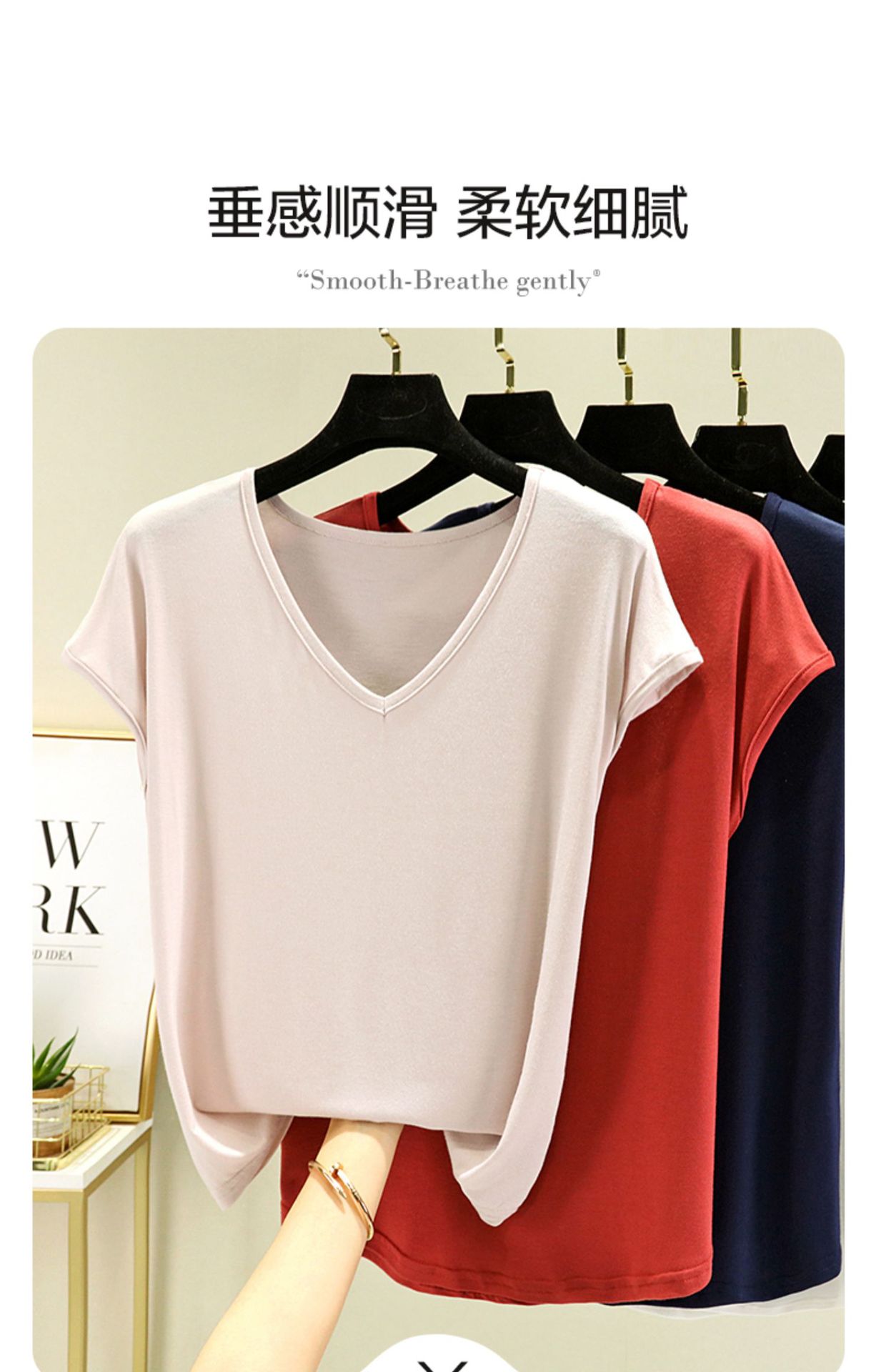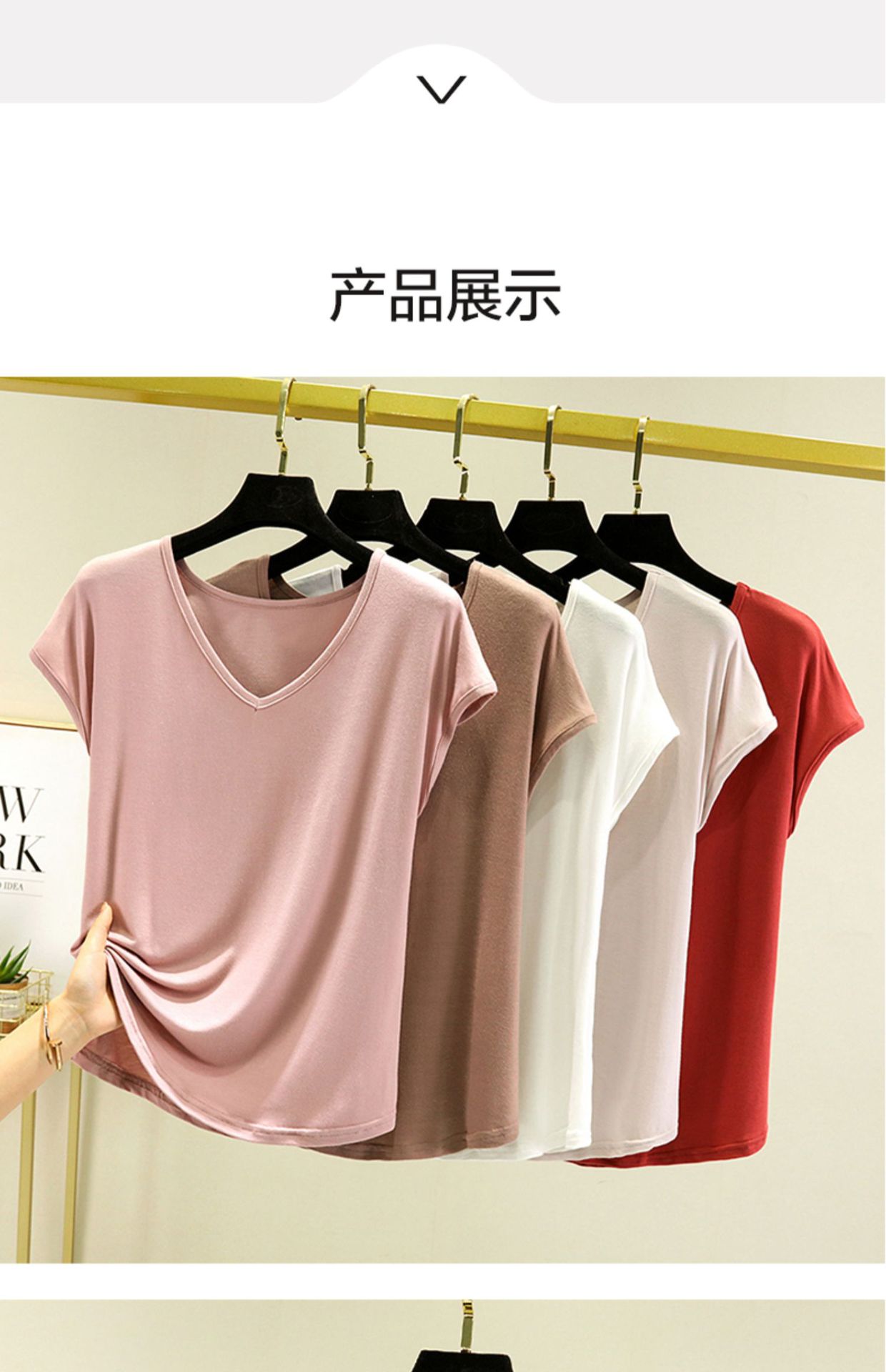 莫代尔无袖背心女夏大码宽松V领打底短袖t恤外穿薄款内搭休闲上衣