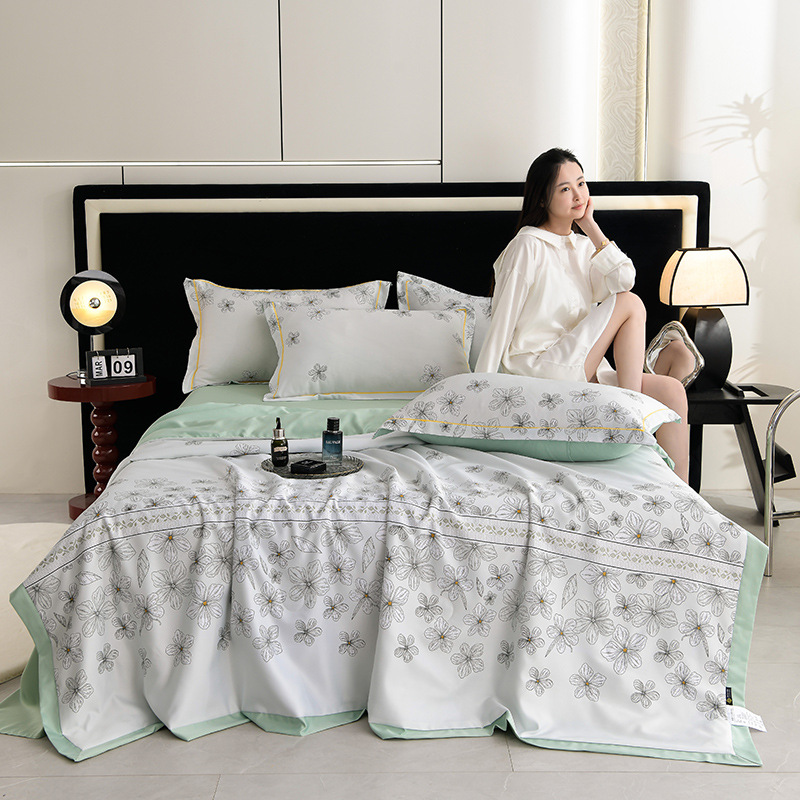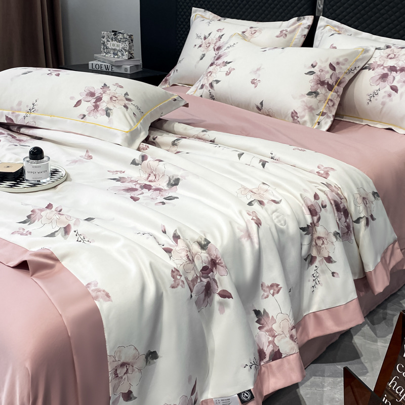 새로운 씻은 텐셀 여름 쿨 퀄티 아이스 실크 여름 퀘티 네 조각 세트 기계 세탁기 여름 아이스 실크 에어 컨디셔닝 퀄티 팩토리 아울렛