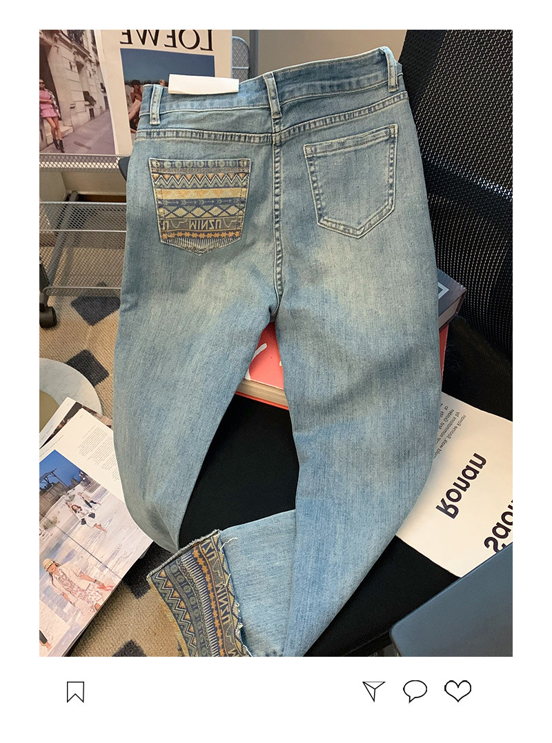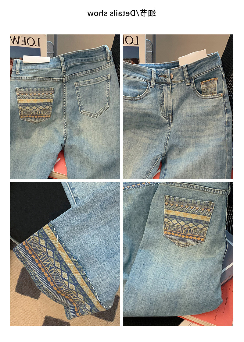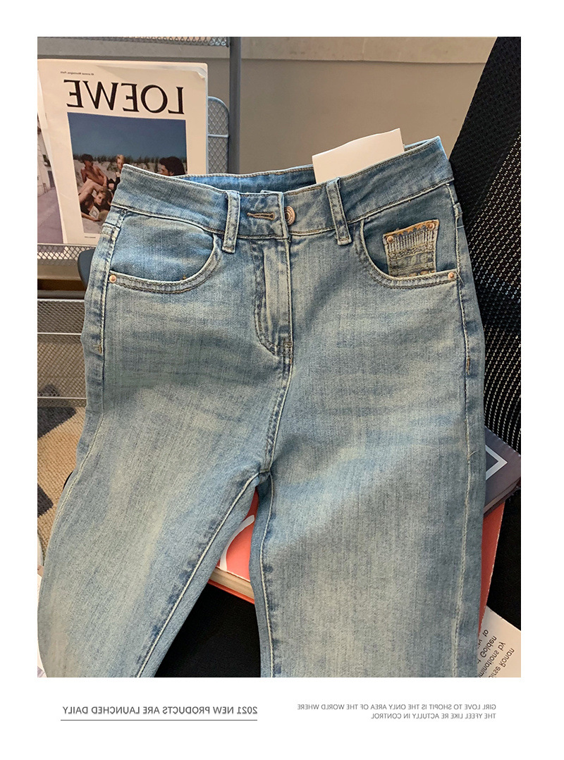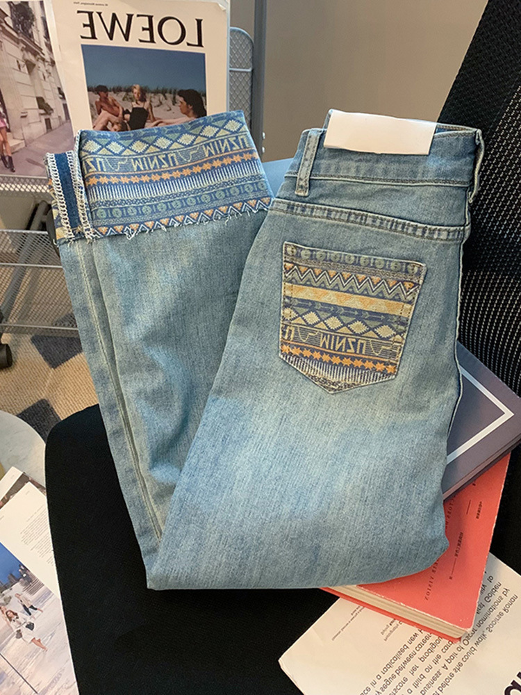 봄과 여름 2025 새로운 유럽 높은 허리 슬리밍 스트레이트 바지 배 모양의 그림 블루 청바지 여성의 턴 업 담배 바지스토어 가기