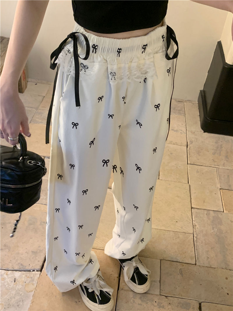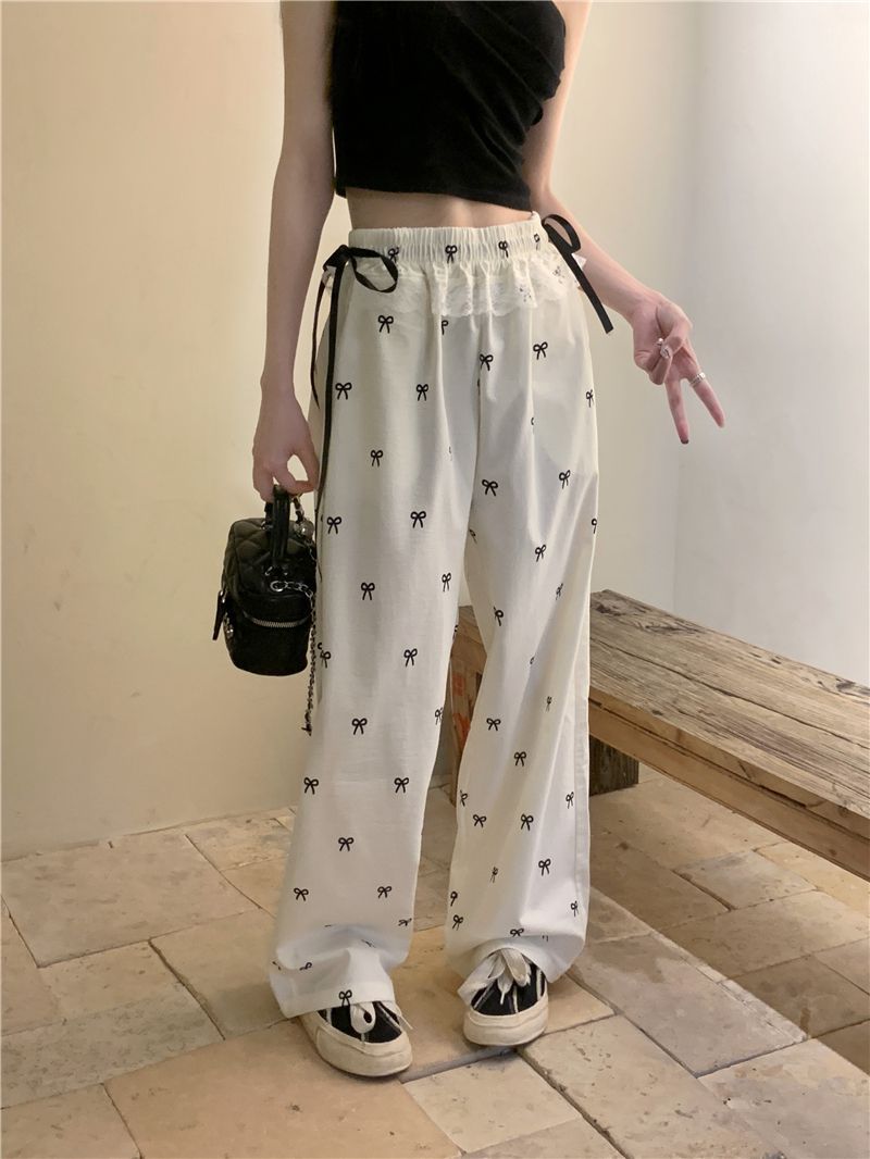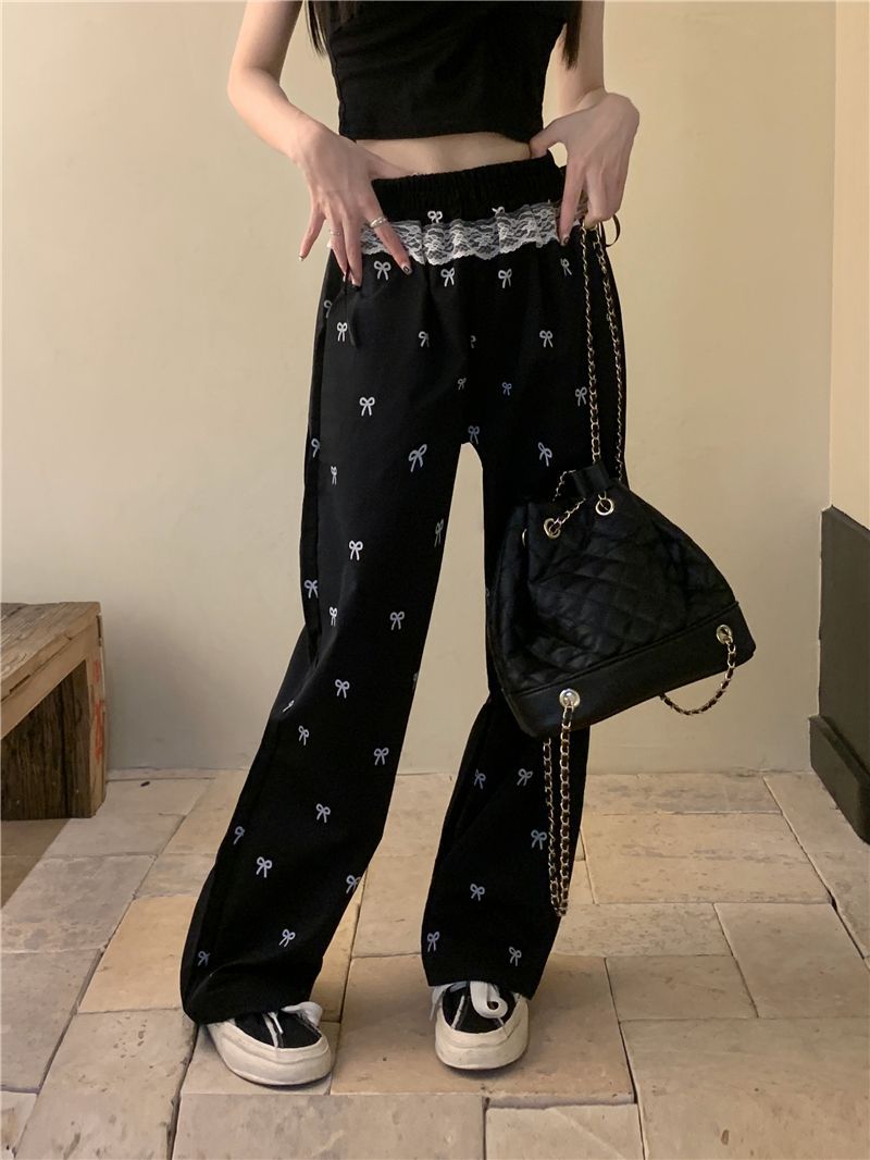 활 레이스 바느질 넓은 다리 바지 여성용 가을 높은 허리 느슨한 슬리밍 캐주얼 올 매치 바지 게으른 걷기 바지스토어 가기