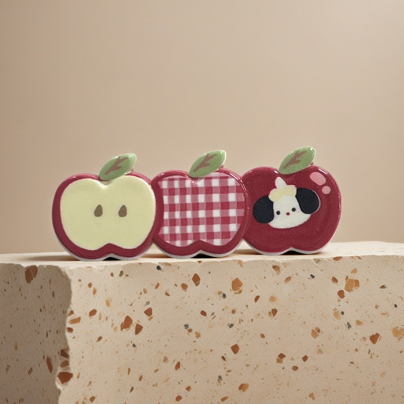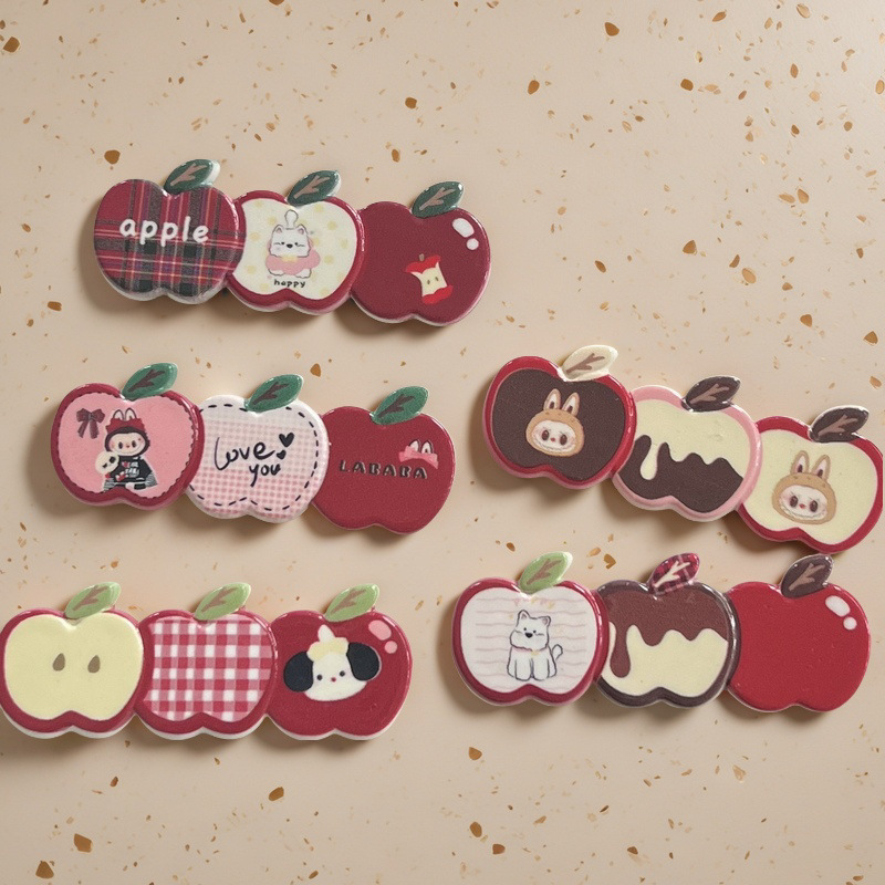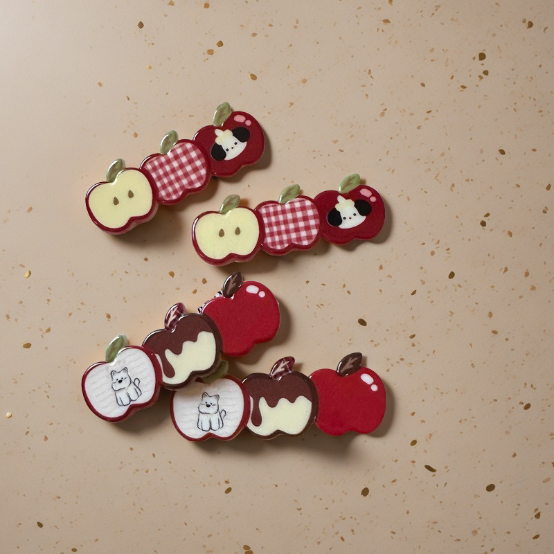 레트로 만화 버건디 이른 봄 크림 사과 머리핀 귀여운 격자 무늬 소녀 사이드 덕빌 클립 다용도 머리핀