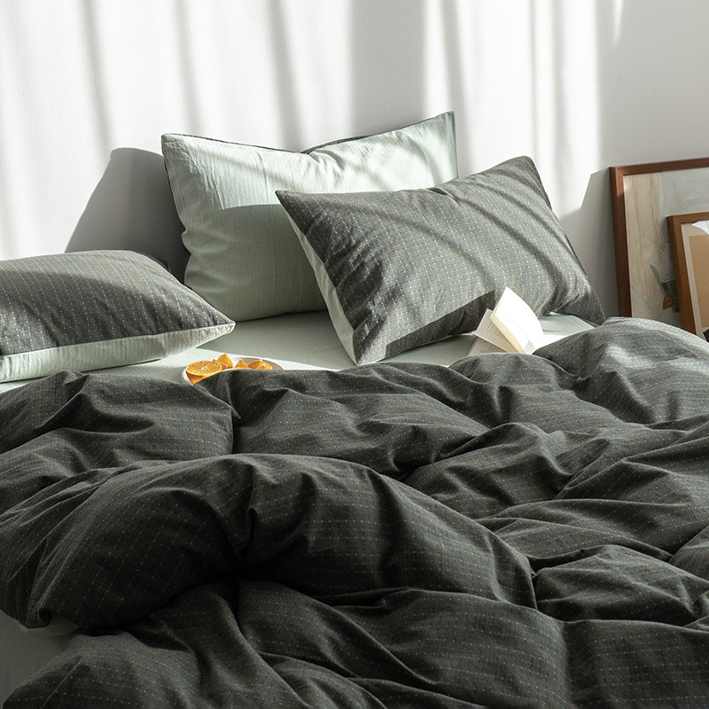 일본식 간단한 씻은 면화 침대 시트 4 종 세트 스타일 학생 기숙사 이불 세트 침대 3 종 세트 하이 엔드 침대