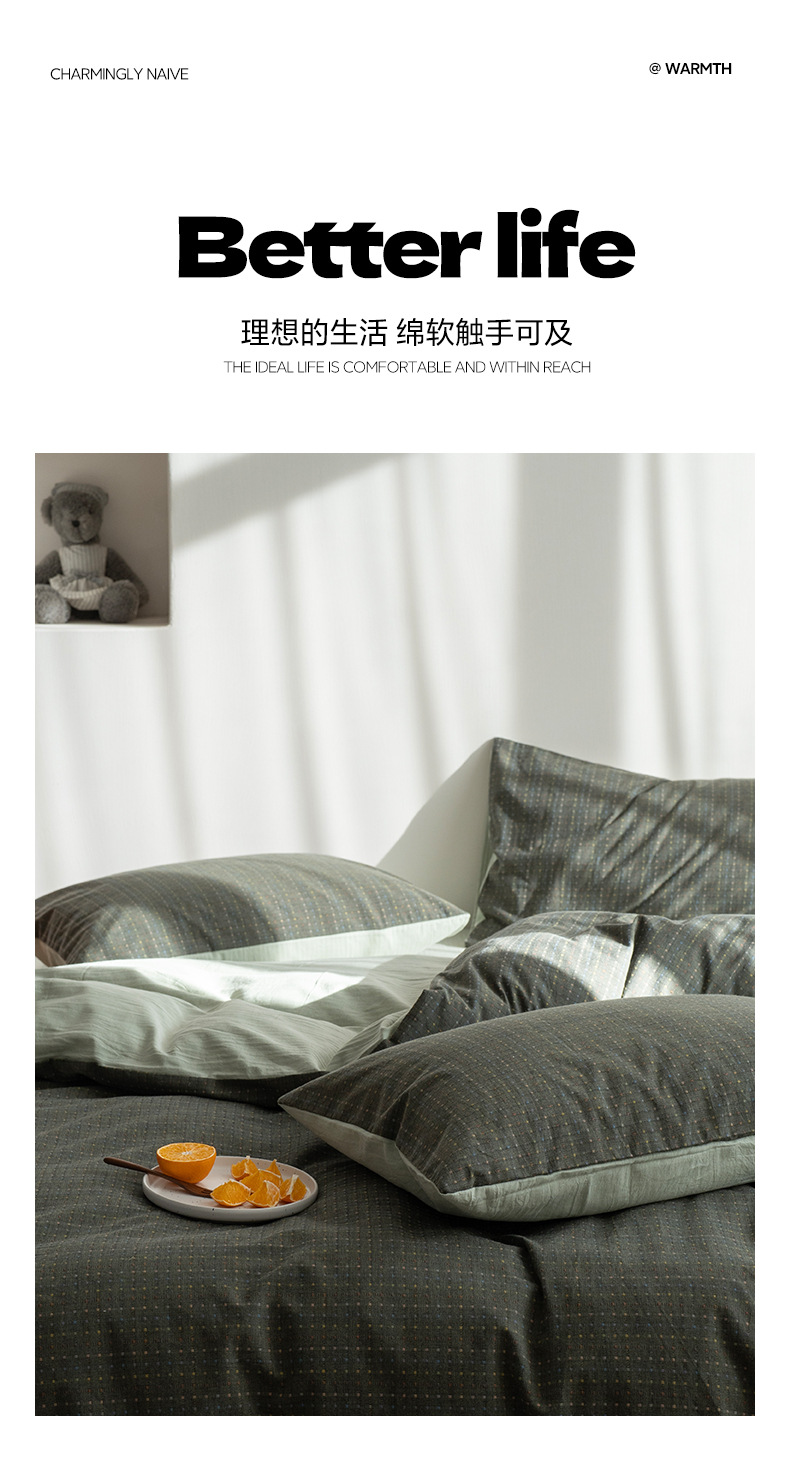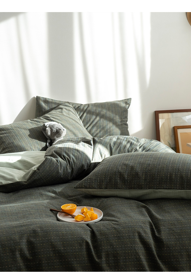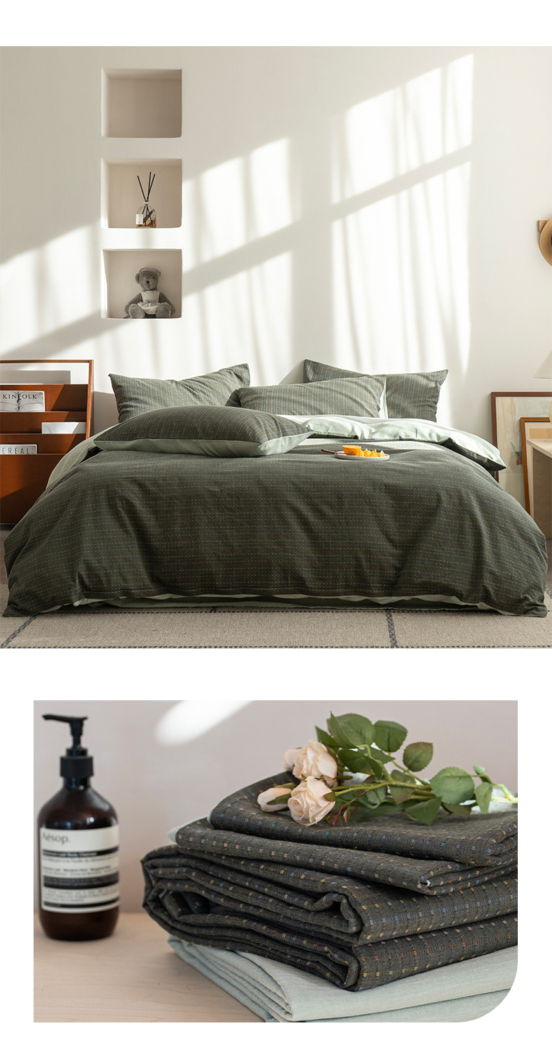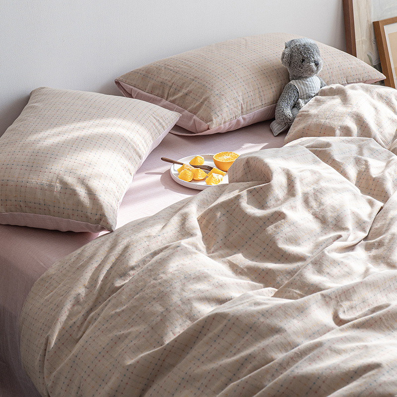 일본식 간단한 씻은 면화 침대 시트 4 종 세트 스타일 학생 기숙사 이불 세트 침대 3 종 세트 하이 엔드 침대스토어 가기