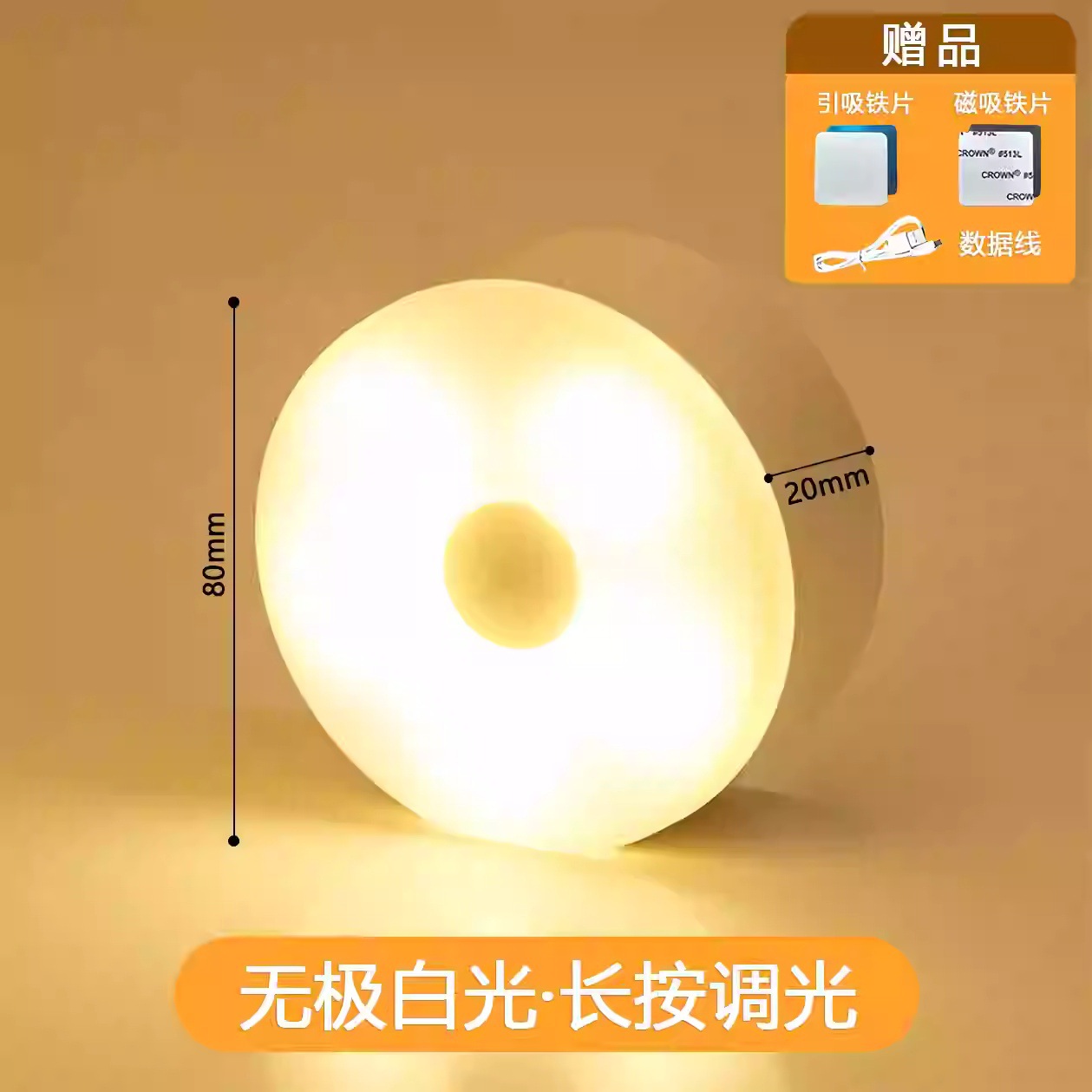 • 따뜻한 조명 버튼형 [1개입] 밝기 조절 가능 (충전 케이블 + 자석 부착 패드 증정)