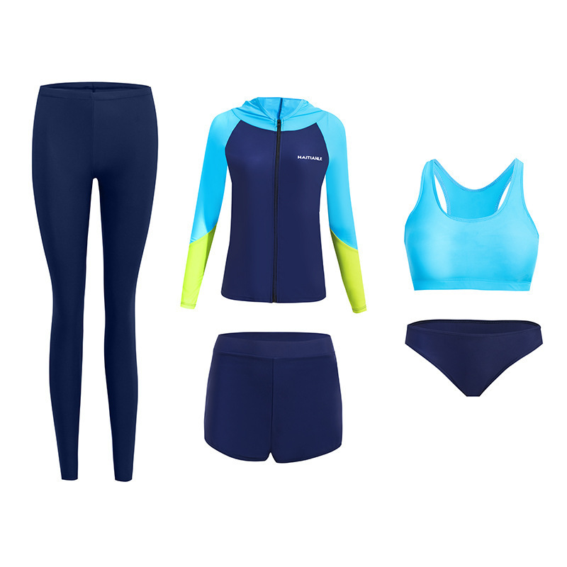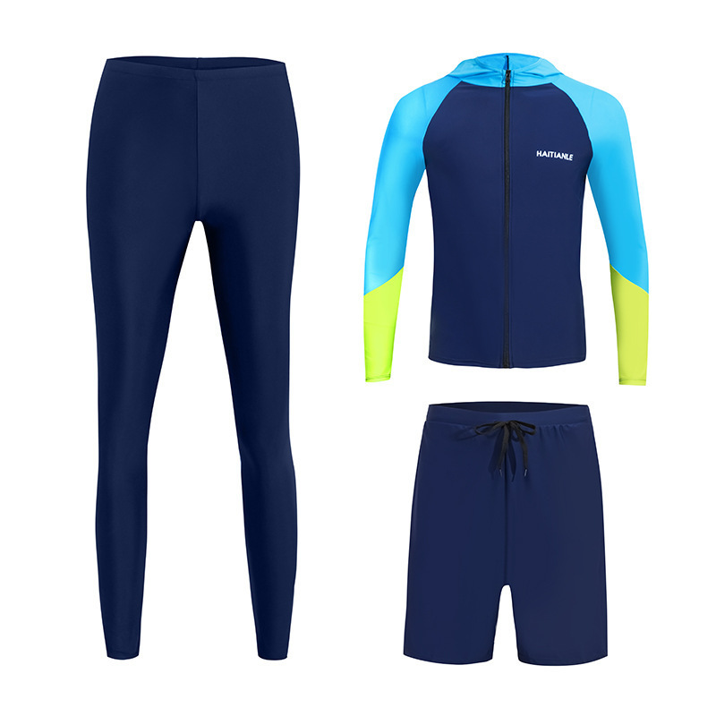 새로운 남성과 여성의 긴 소매 바지 세트 수영복 분할 색상 분할 후드 썬 스크린 다이빙 세트 서핑 스노클링 수영복