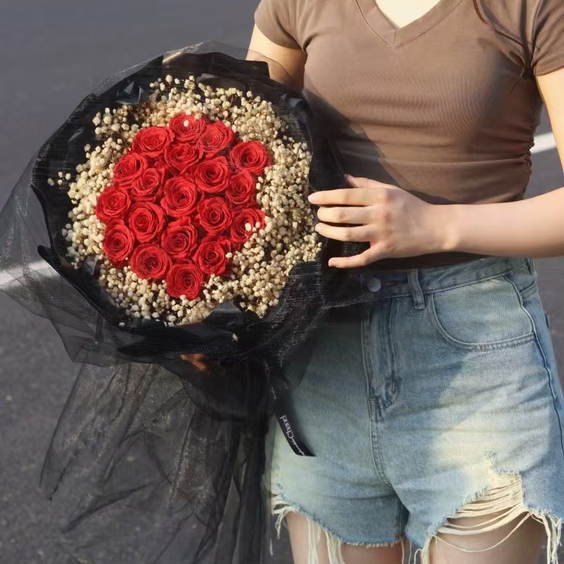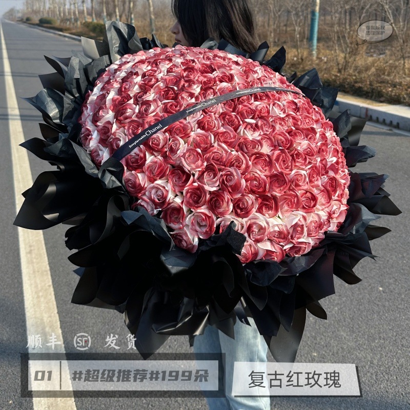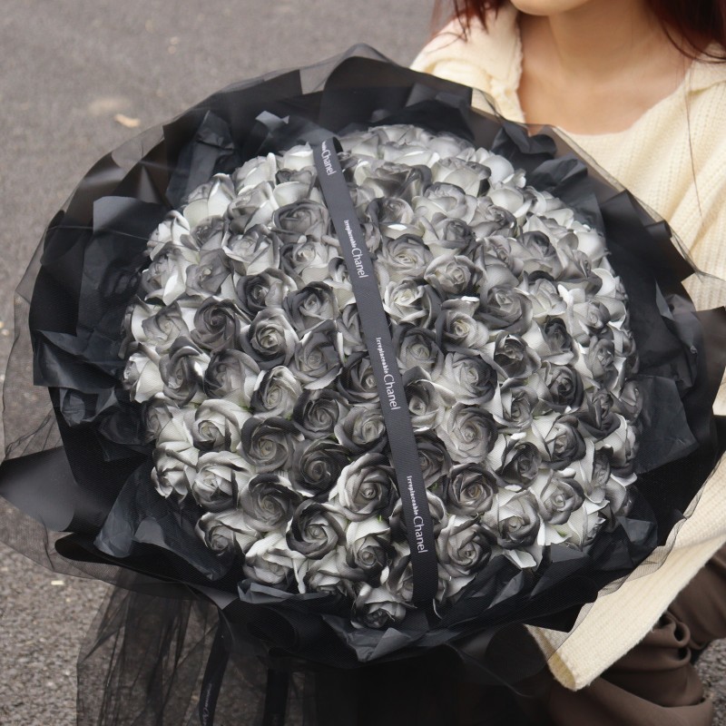 • W【99송이】검은 거즈 붉은 장미