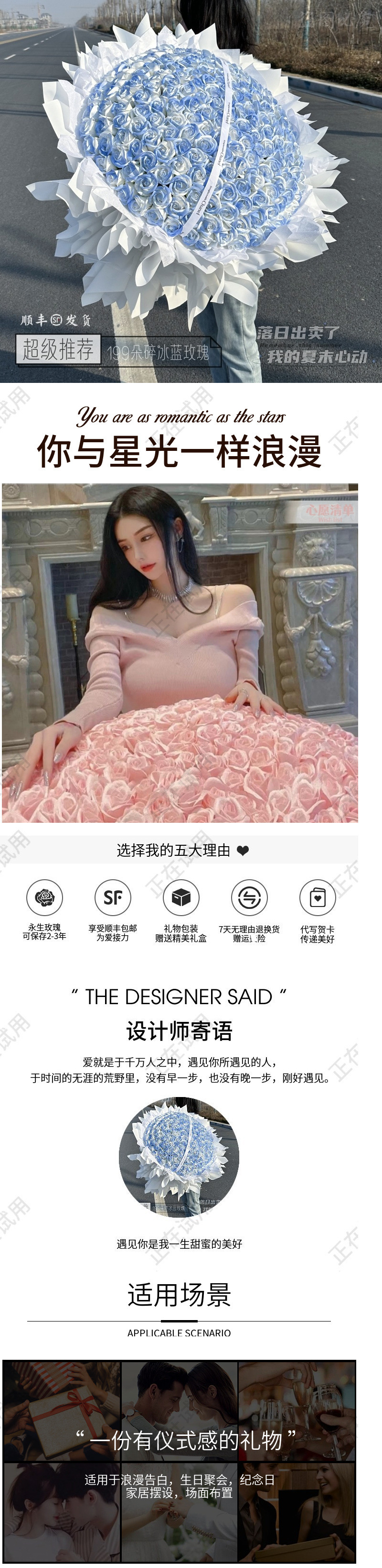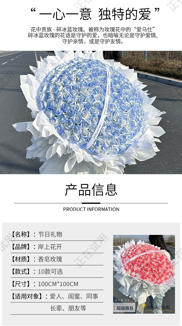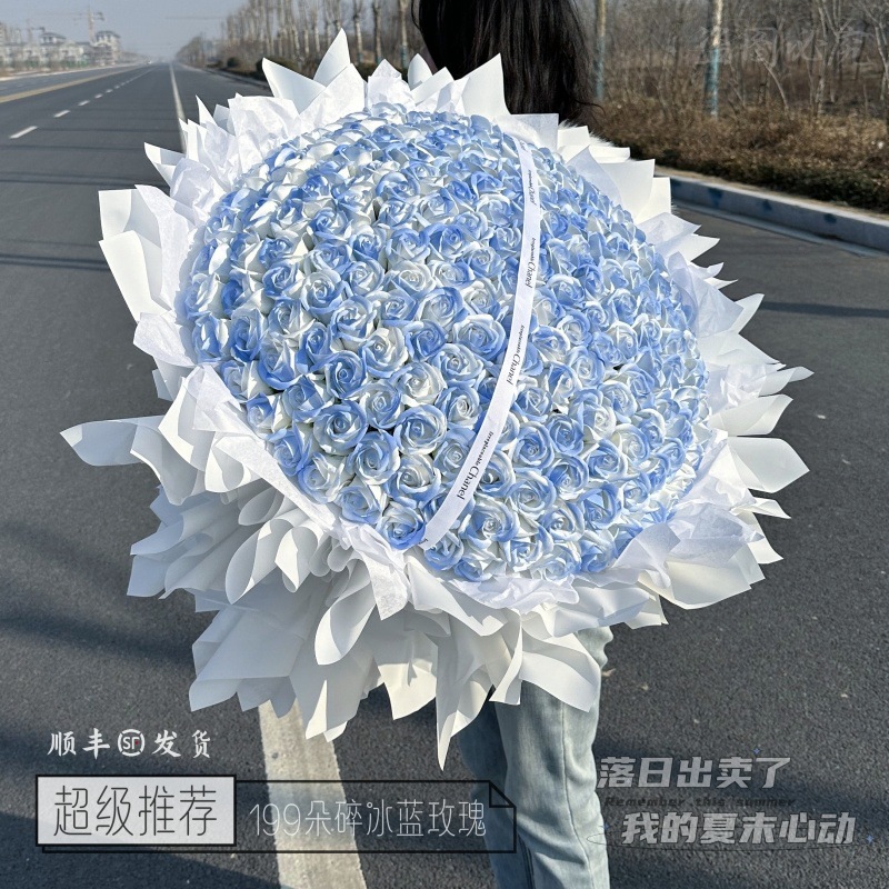 199 개의 영원한 장미 꽃을 들고 214 발렌타인 데이 선물 비누 아이스 블루 장미 520 발렌타인 데이스토어 가기