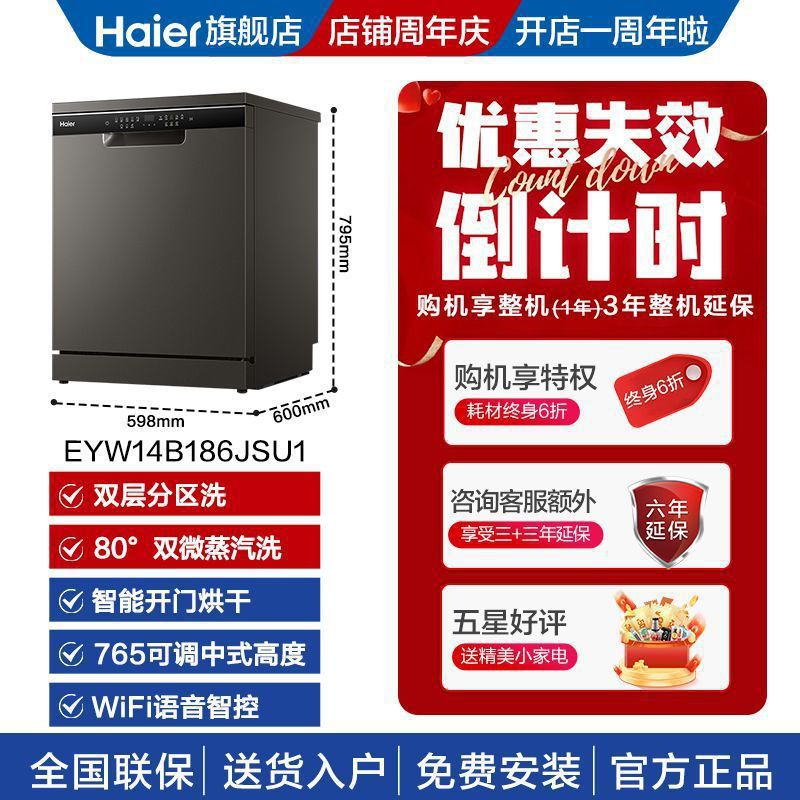 Haier 14세트 식기세척기 s186 가정용 완전 자동 분할 세척 및 건조 스마트 식기세척기 EYW14B186JSU1스토어 가기