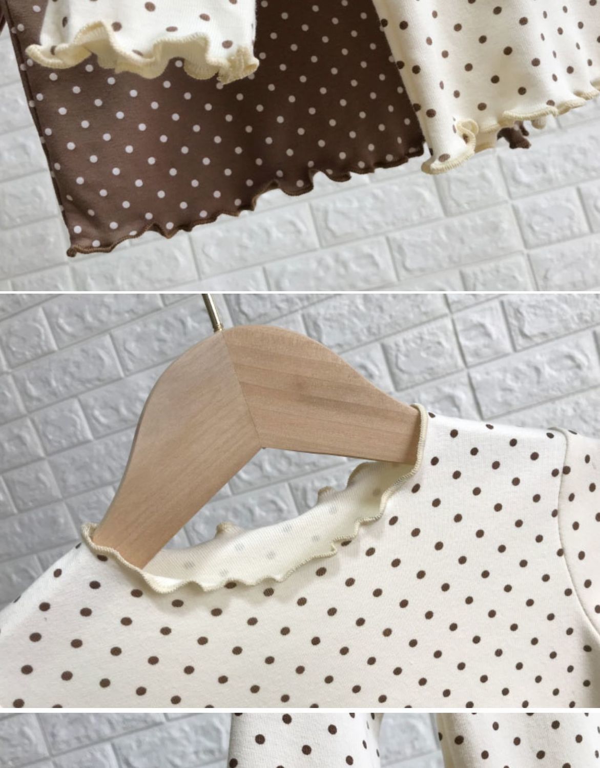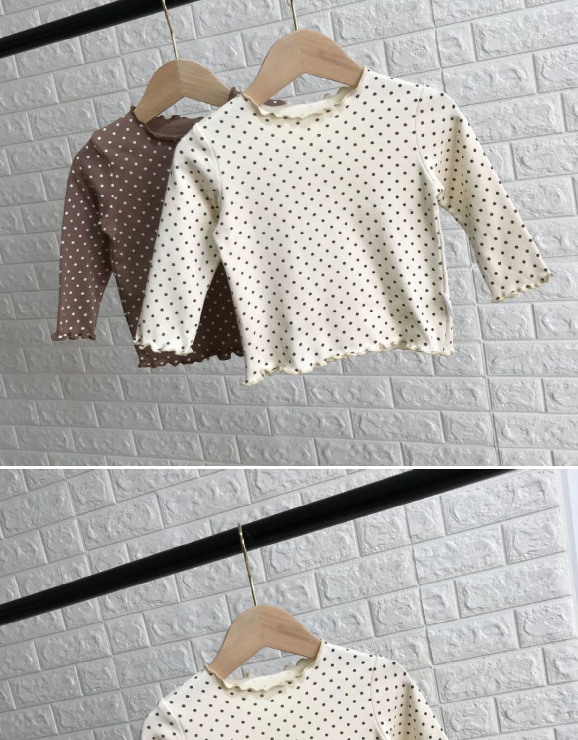 아기의 2022 년 남학생과 여학생의 한국식 폴카 도트 아기의 올 매치 티셔츠 탑으로 어린이 가을과 겨울 보투 셔츠