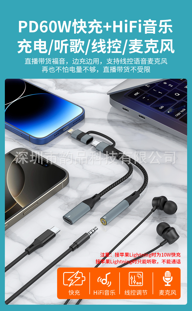 1-2 형-c 어댑터 헤드셋 오디오 케이블 3.5mm 충전 PD60W 빠른 충전 노트북 컨버터