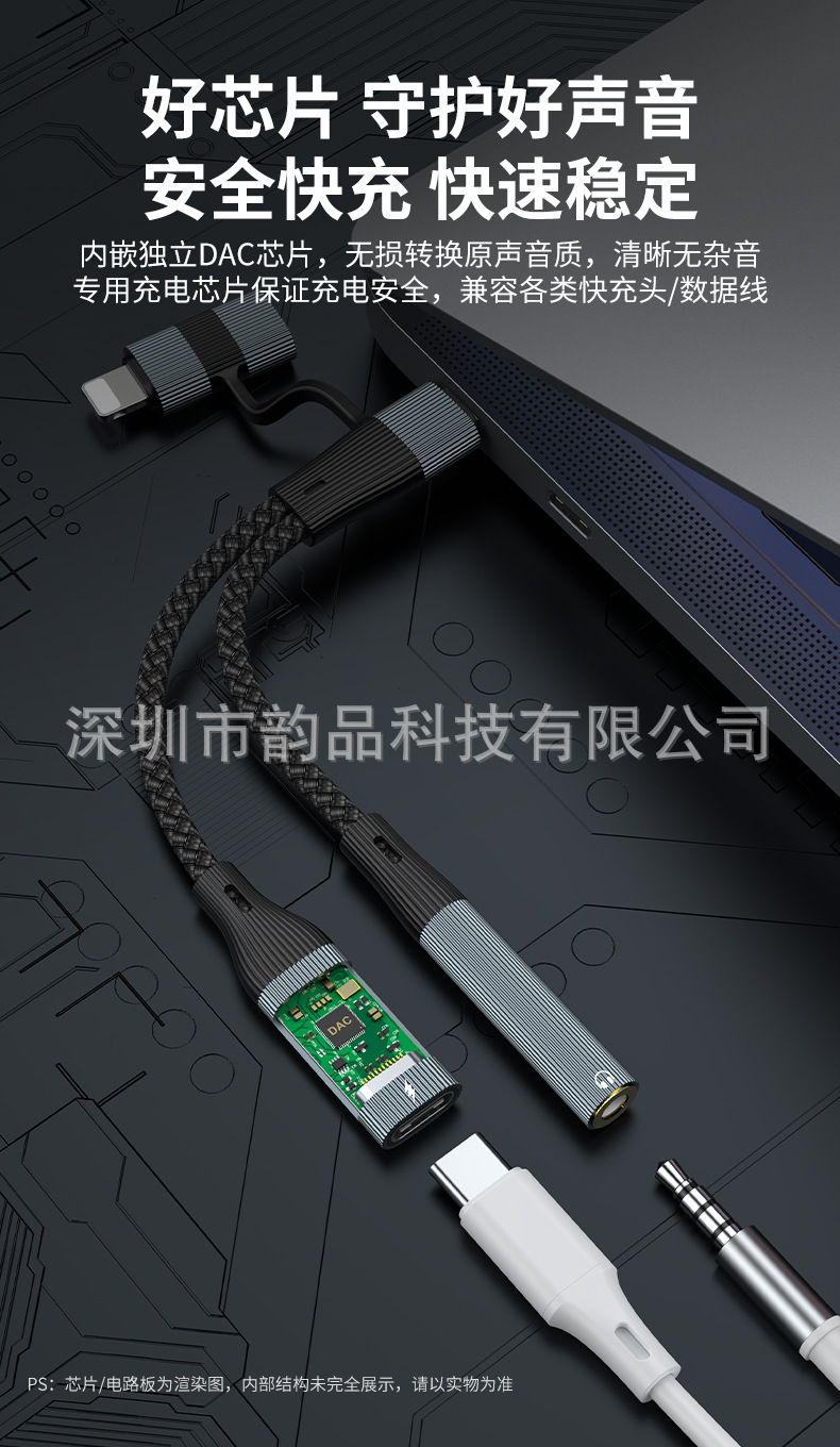 1-2 형-c 어댑터 헤드셋 오디오 케이블 3.5mm 충전 PD60W 빠른 충전 노트북 컨버터스토어 가기
