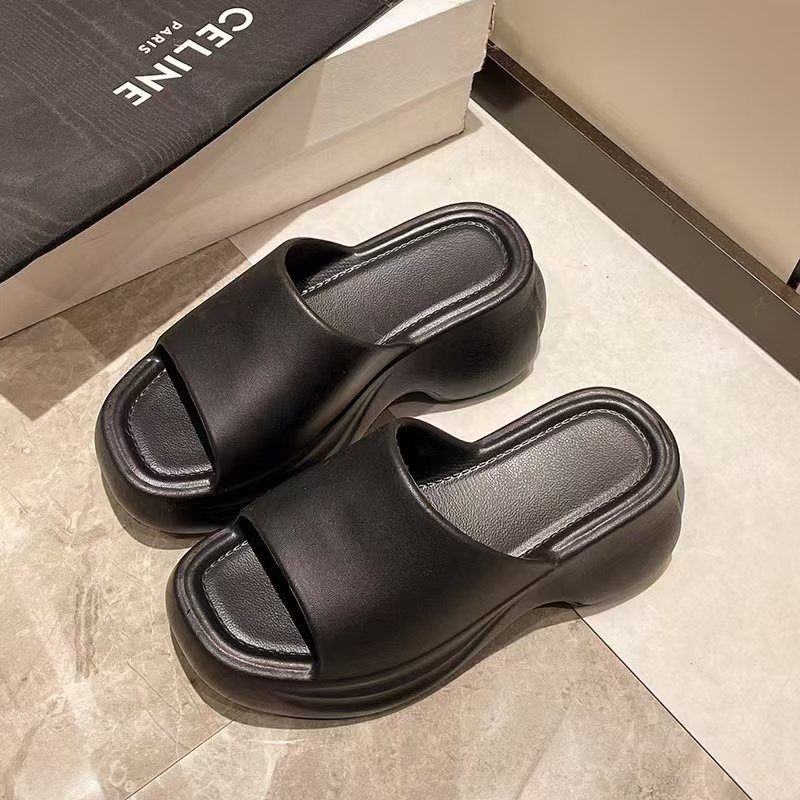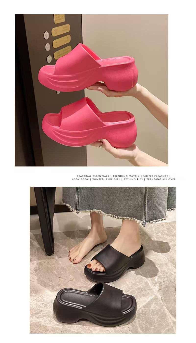 한국 스타일 플립 플롭 여성 여름 외부 두꺼운 하단 패션 캐주얼 플립 플립-플롭 비 슬립 하이힐 비치 슬리퍼 트렌디스토어 가기