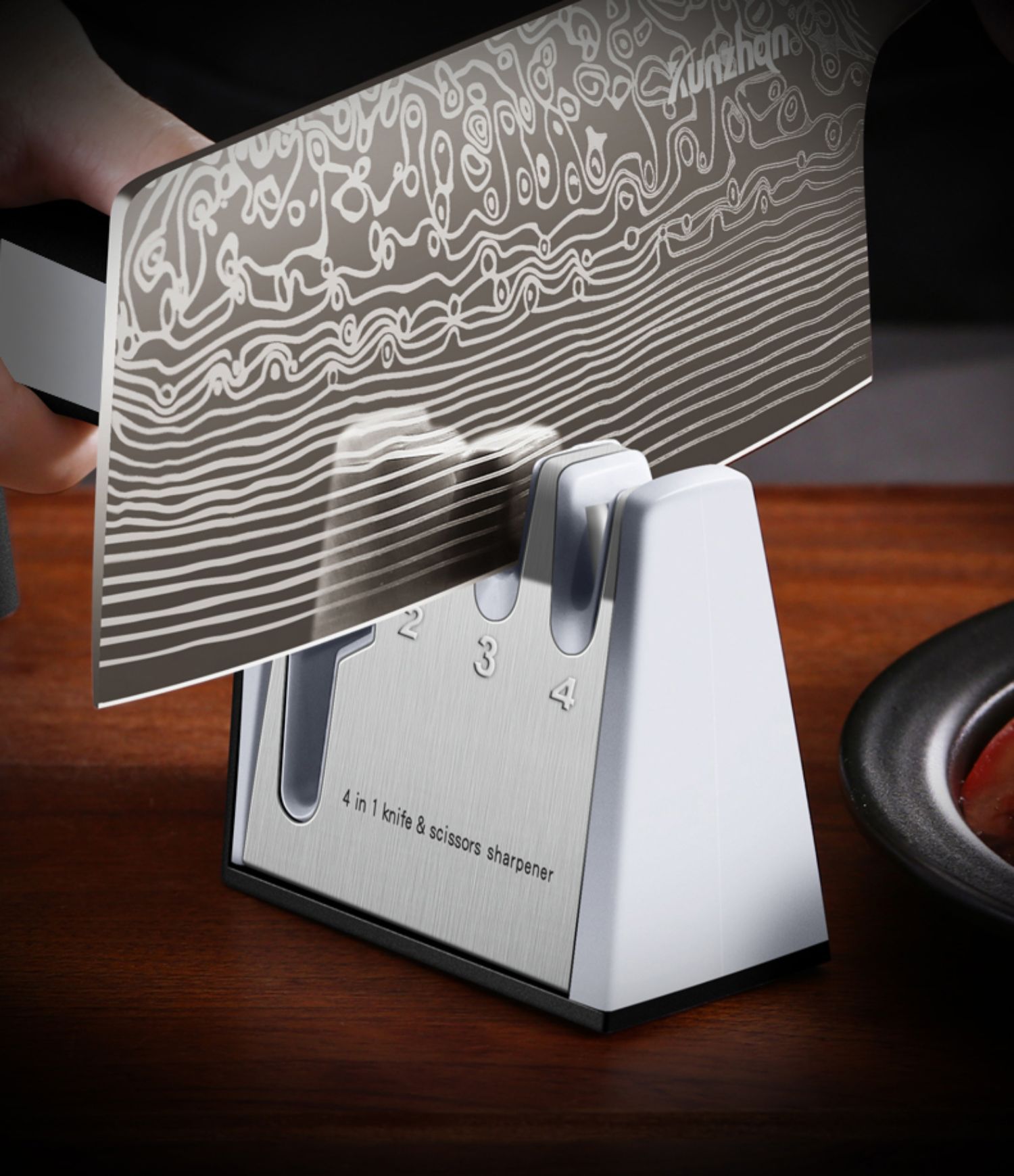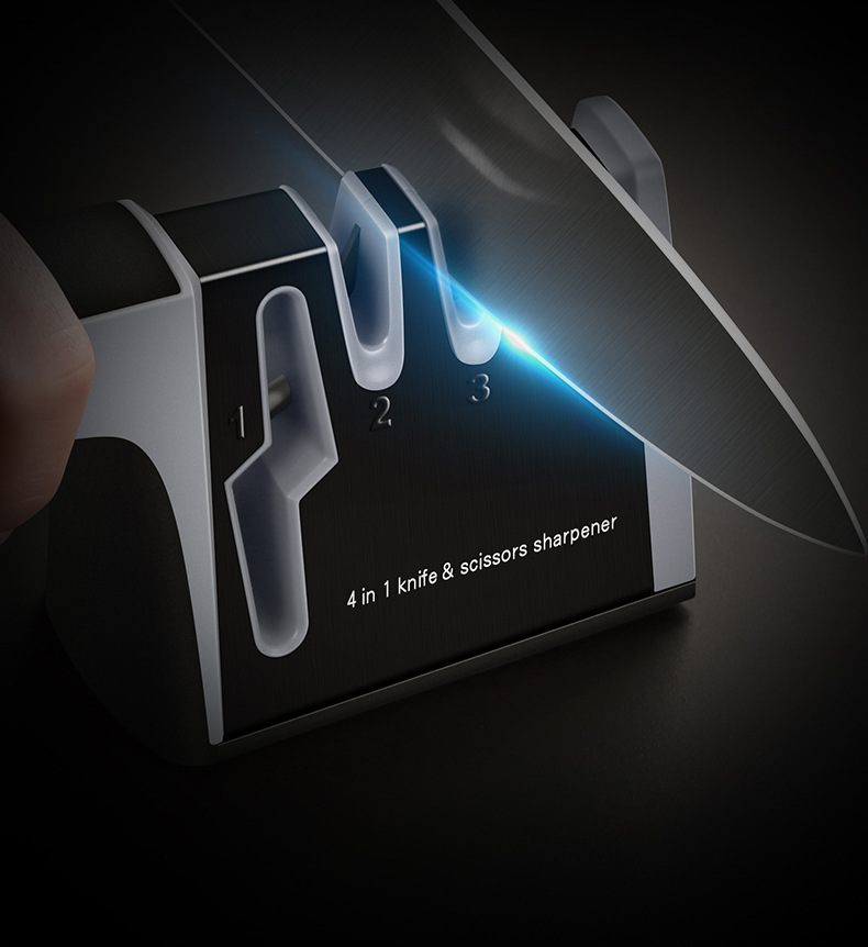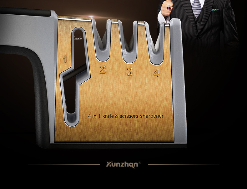 • 4구 연삭 위치, 시원한 회색 스테인리스 스틸(25년 이내에 1회 교체), 가위를 갈 수 있음