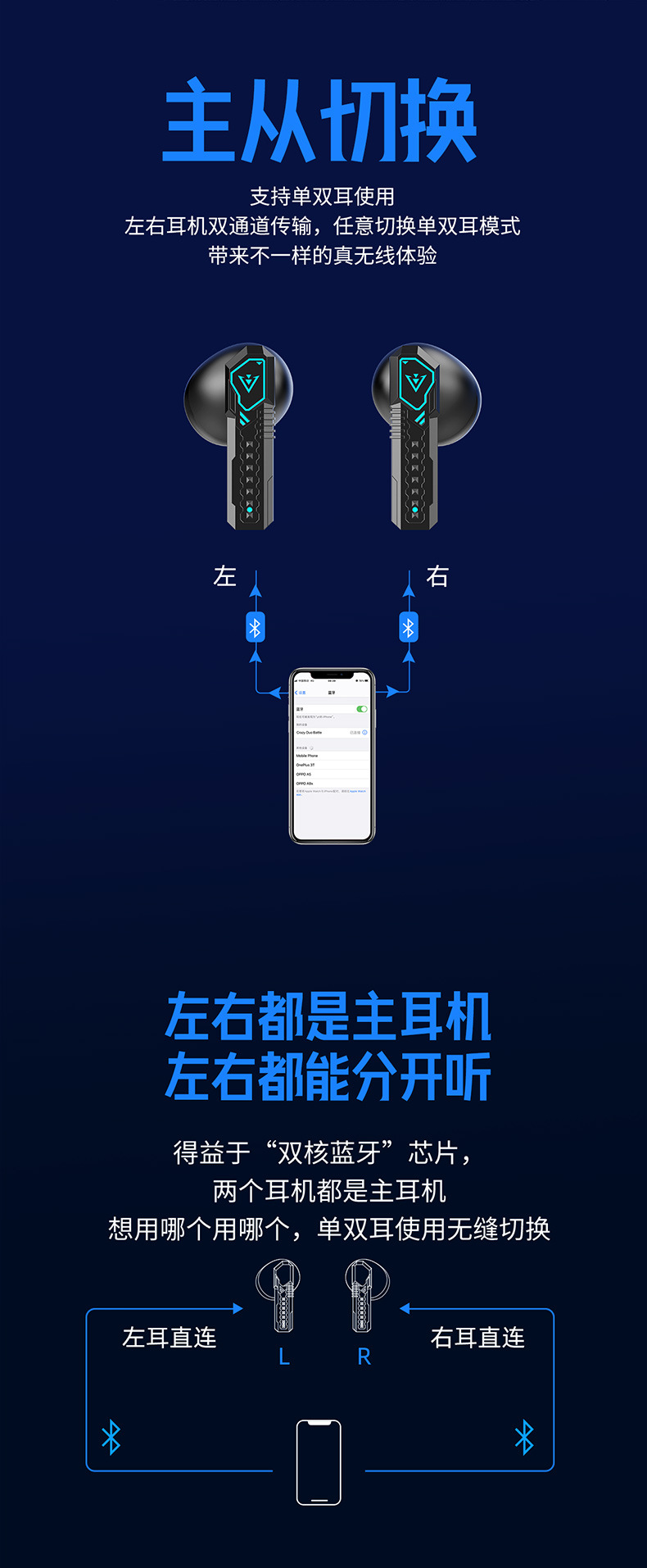 X37 새로운 게임 E-스포츠 블루투스 헤드셋 개인 모델 쿨 E-스포츠 게임 칩 감각 지연 긴 내구성