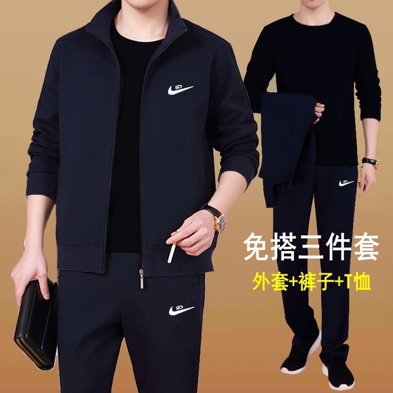 新品男士运动套装男春秋季中老年休闲大码冬季男装长袖外套潮两三
