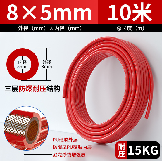 • PU 적색 8*5 3층 방폭 샌드위치 튜브 10m [내압 15KG]