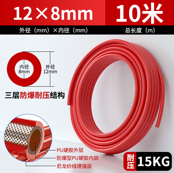 • PU 적색 12*8 3층 방폭 샌드위치 튜브 10m [내압 15KG]