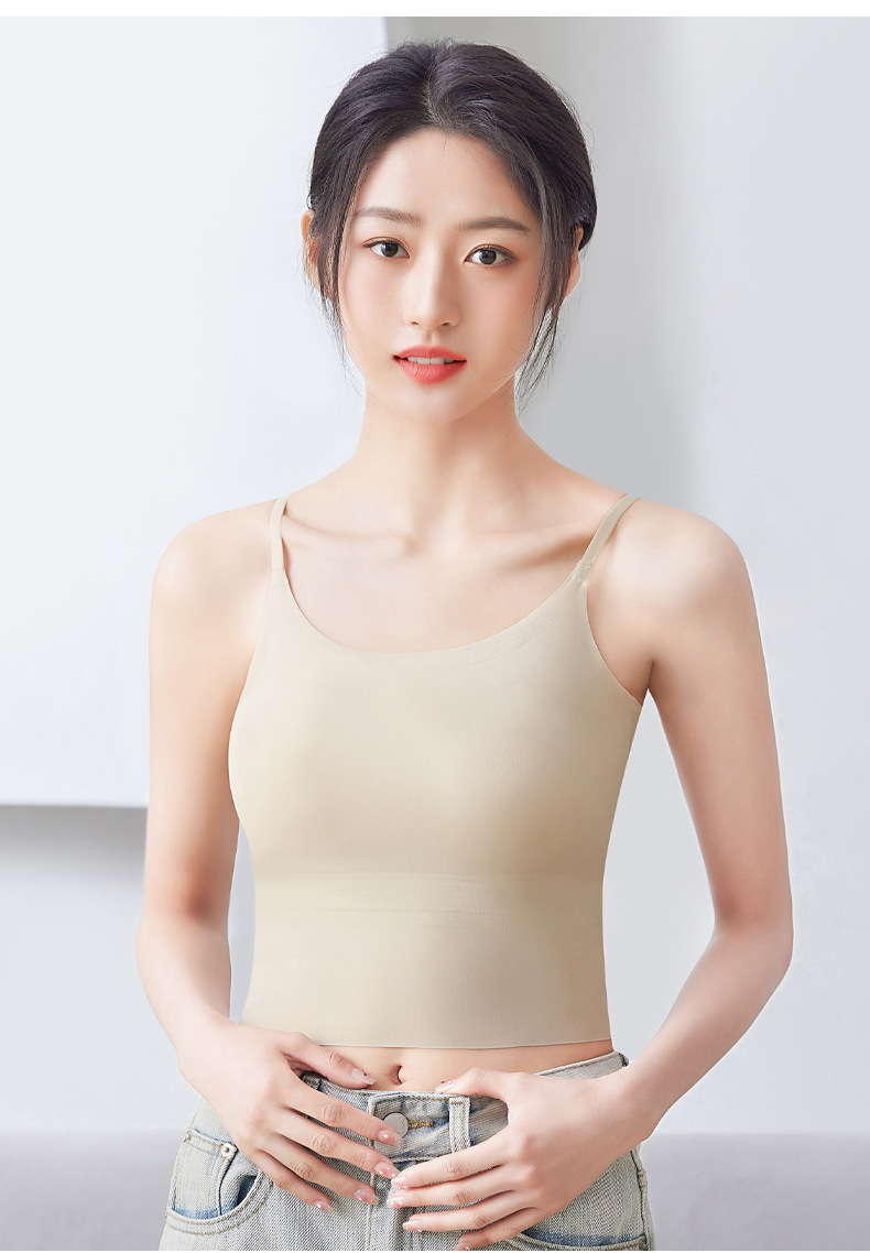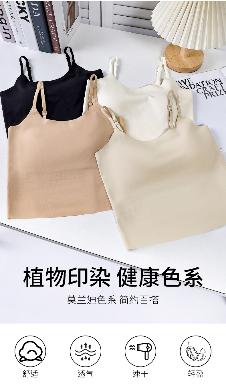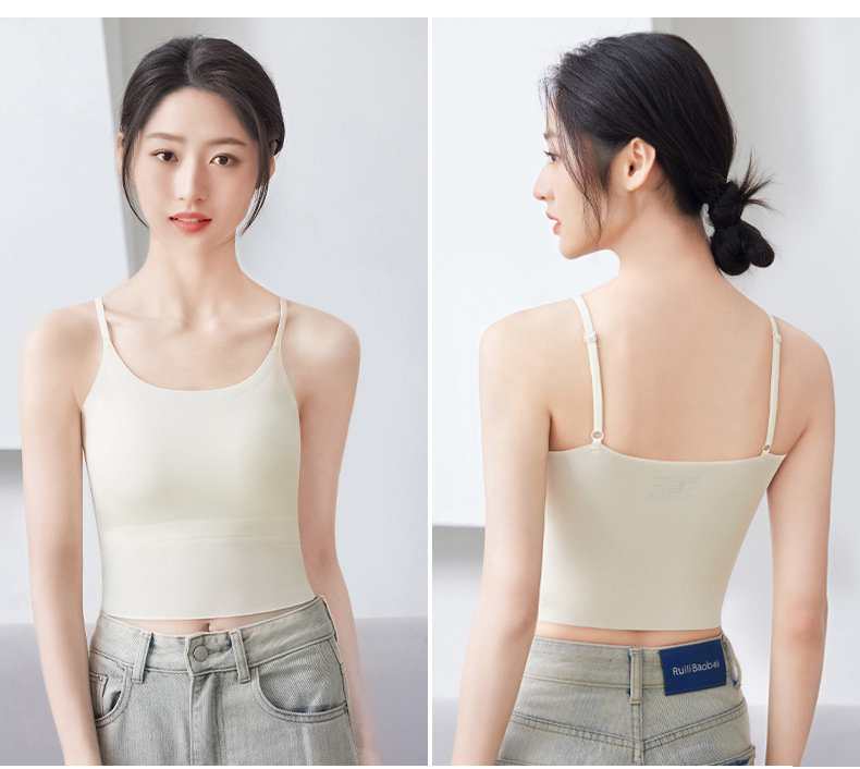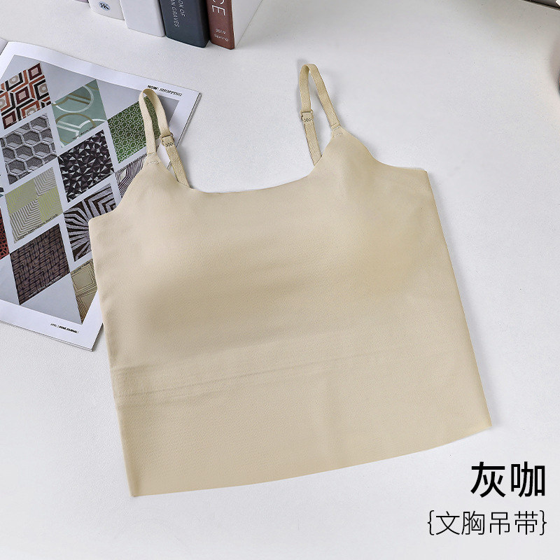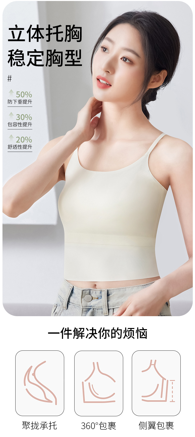 새로운 여름 아이스 실크 긴 슬링 트레이스 뷰티 스트랩 가슴 패드 고정 컵 내부 착용 외부 착용 조정 어깨 스트랩 속옷
