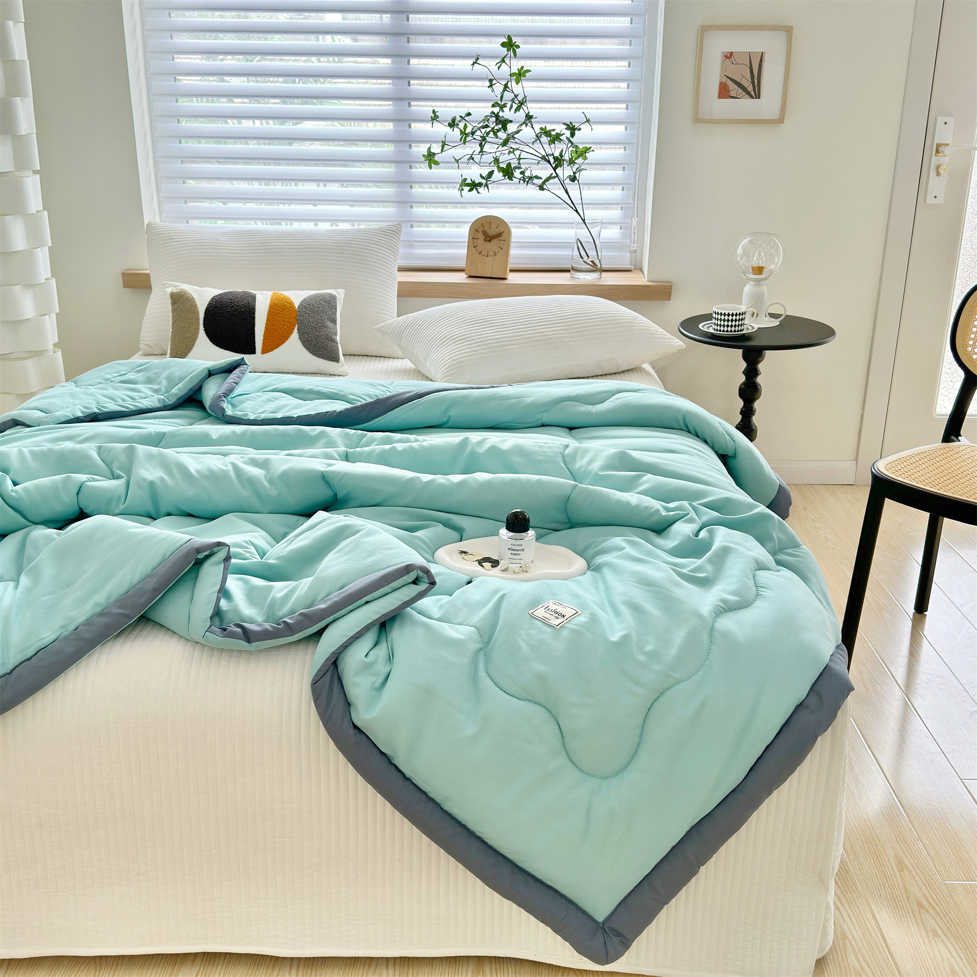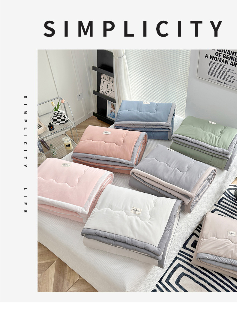 씻은 코튼 솔리드 컬러 여름 쿨 퀼트 더블 에어컨 퀼트 가정용 얇은 여름 이불 학생 싱글 퀼트 코어 대외 무역 도매스토어 가기