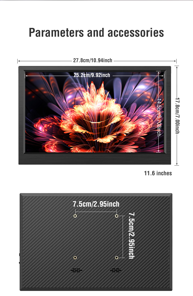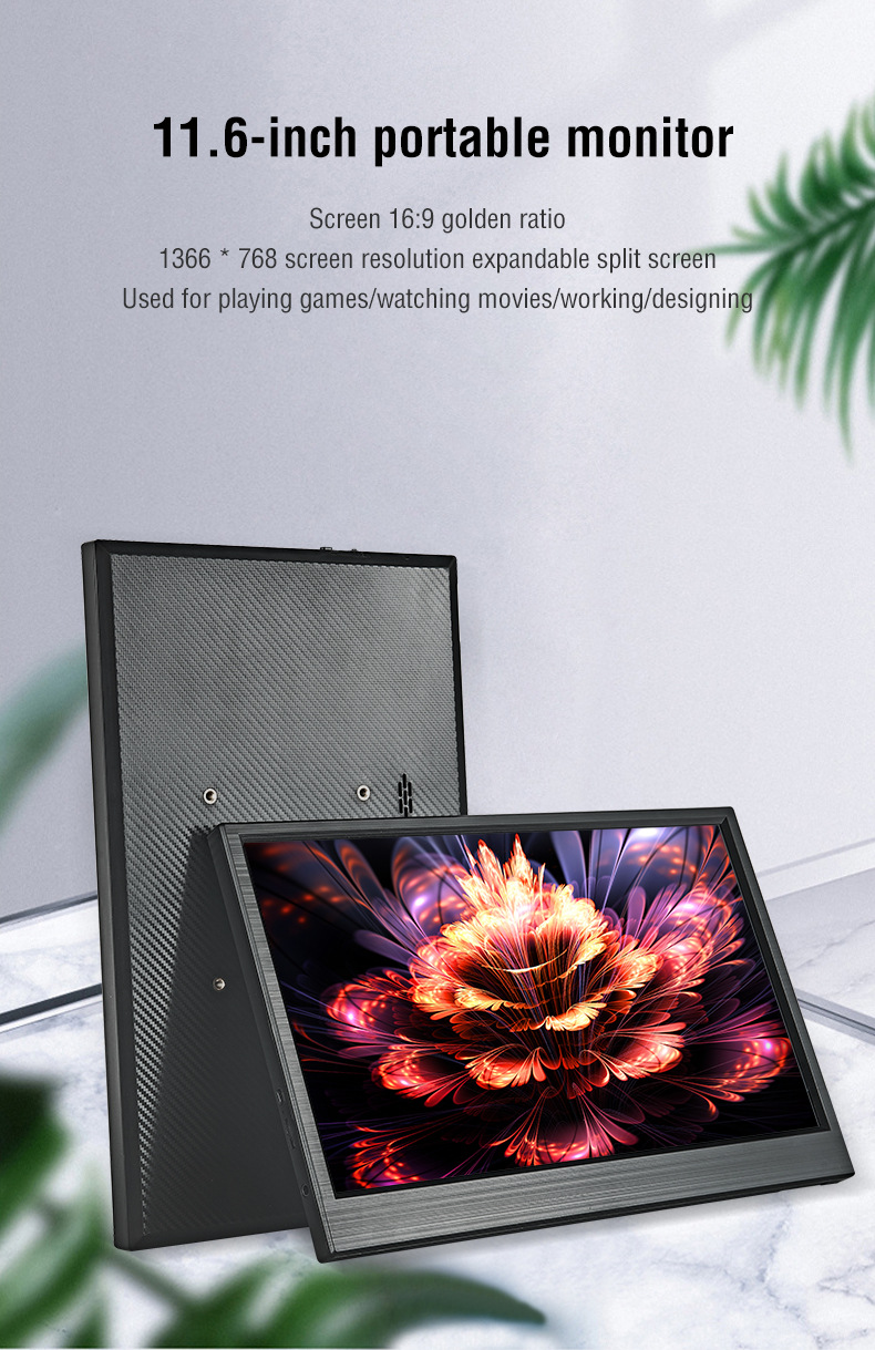 Anmite 11.6 인치 화면 휴대용 모니터 컴퓨터 사무실 게임 디스플레이 화면 HDMI