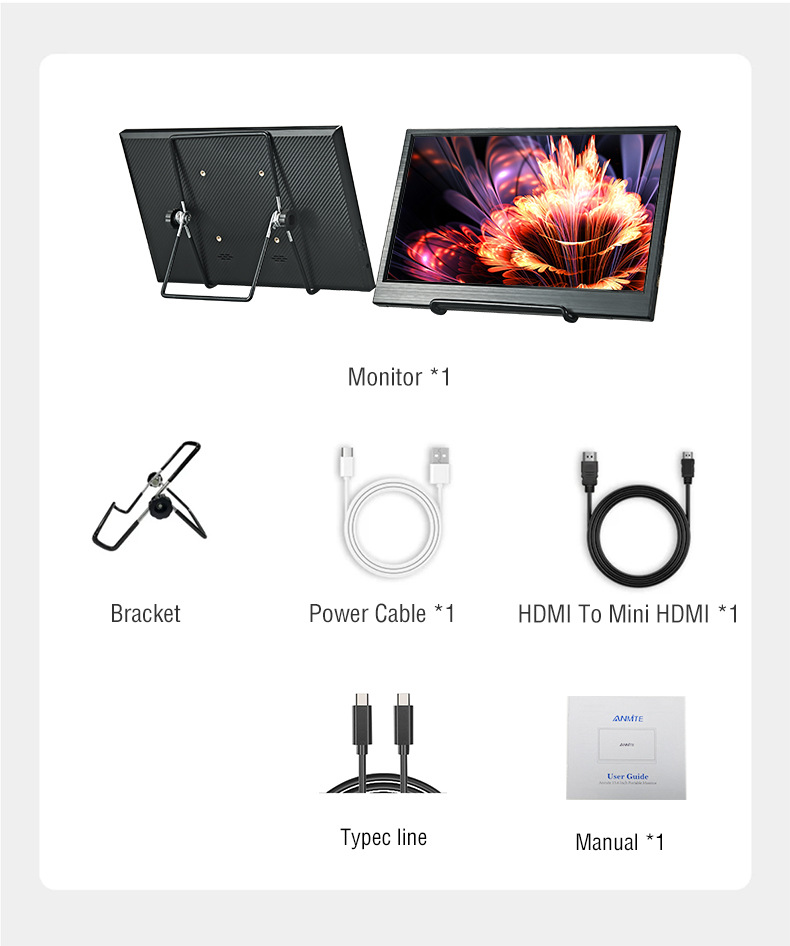 Anmite 11.6 인치 화면 휴대용 모니터 컴퓨터 사무실 게임 디스플레이 화면 HDMI스토어 가기
