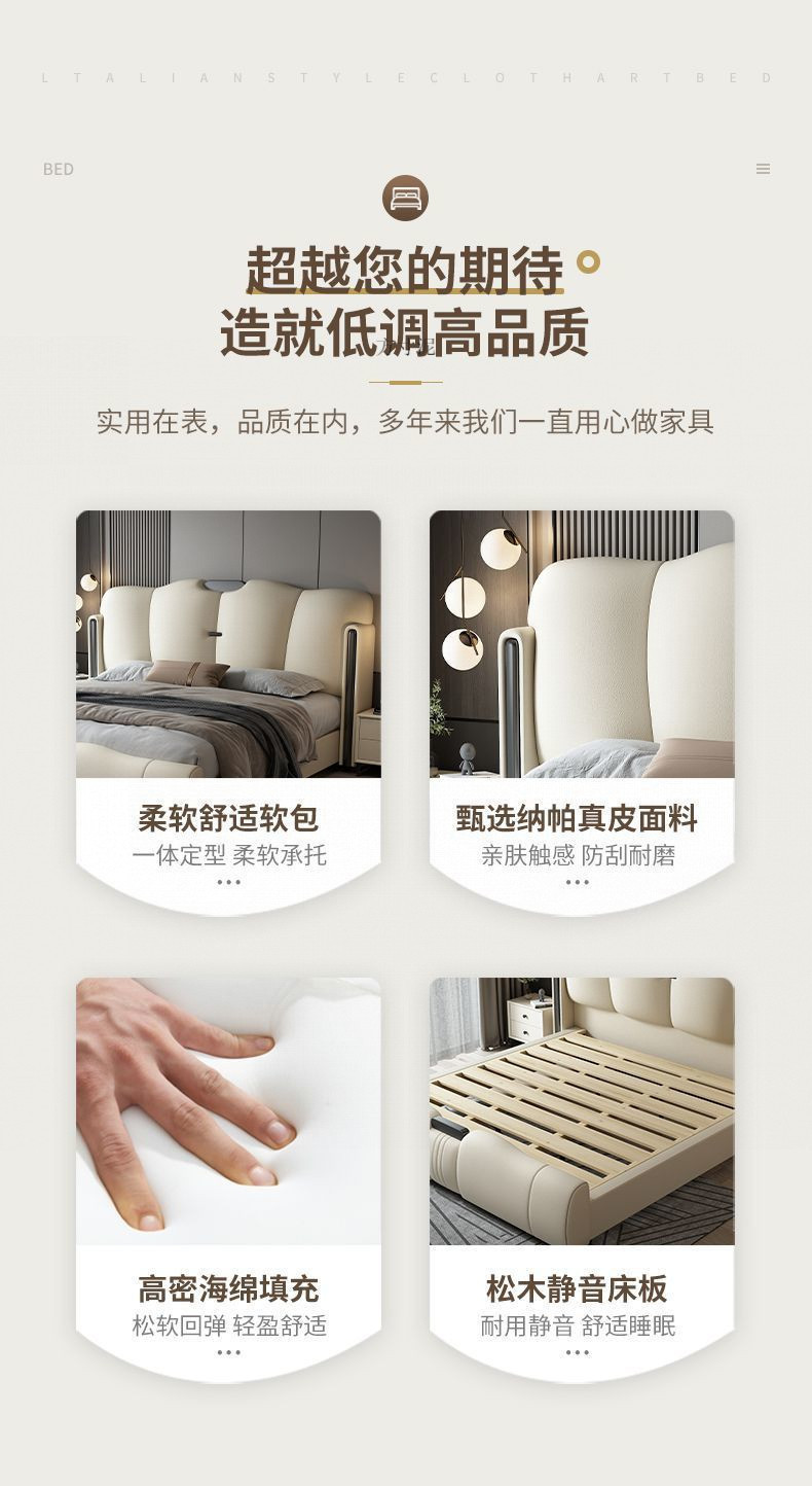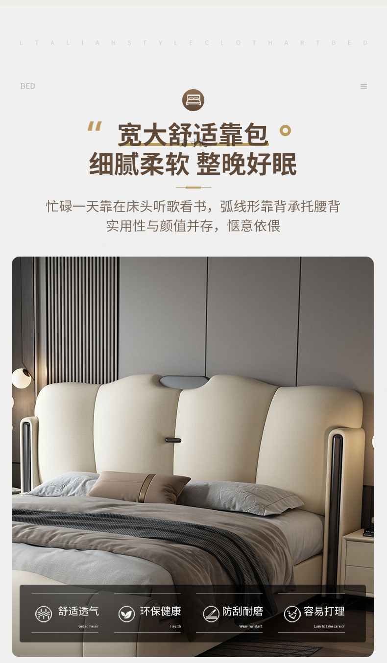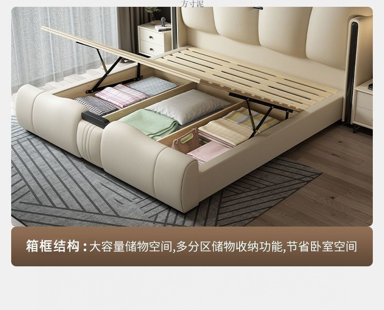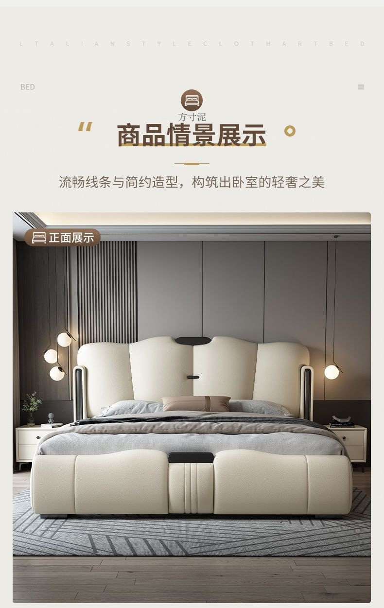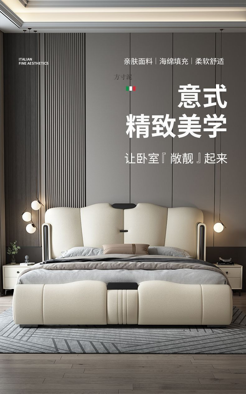 이탈리아 빛 고급 침대 마스터 침실 인터넷 유명 침대 현대 간단한 가죽 아트 침대 부드러운 가방 보관 침대 침실 고급 웨딩 침대