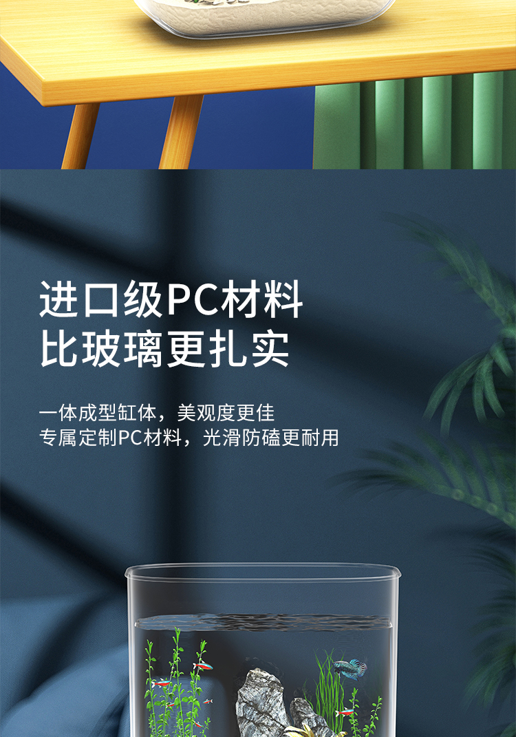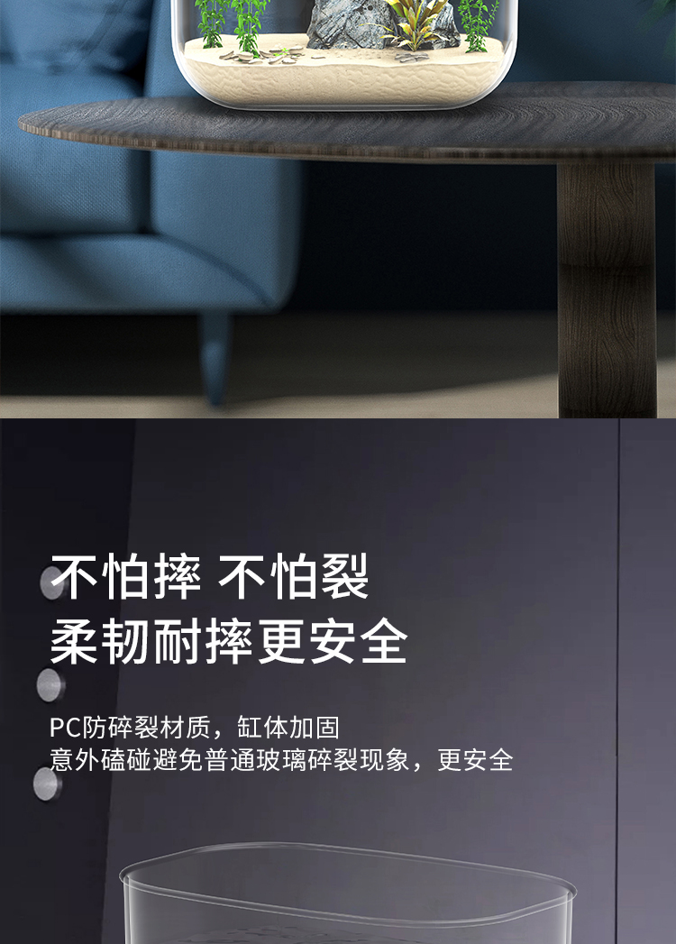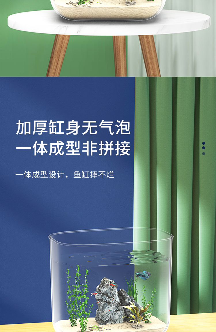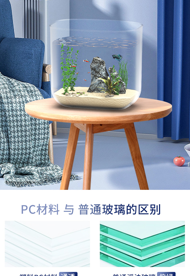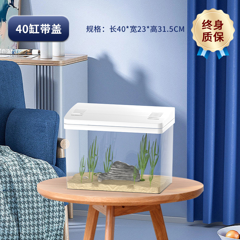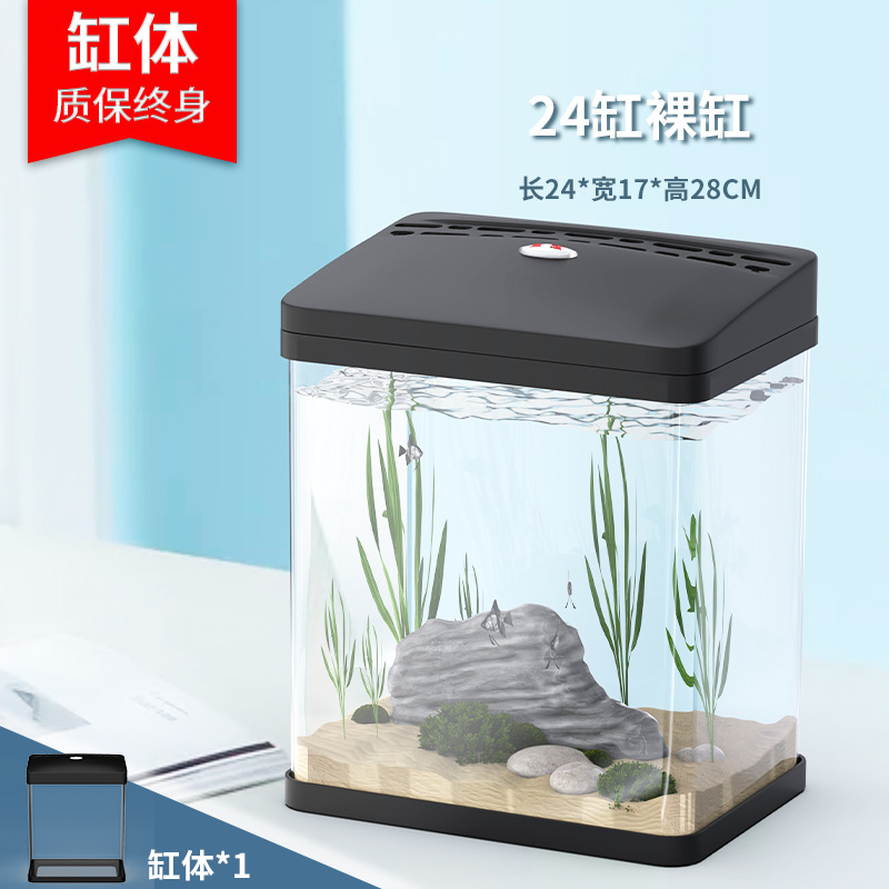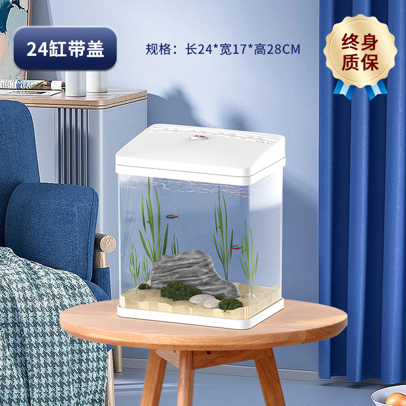 물고기 탱크 거실 작은 조경 생태 자기 순환 게으른 빛 럭셔리 아크릴 라운드 데스크탑 수족관 거북이 반얀스토어 가기