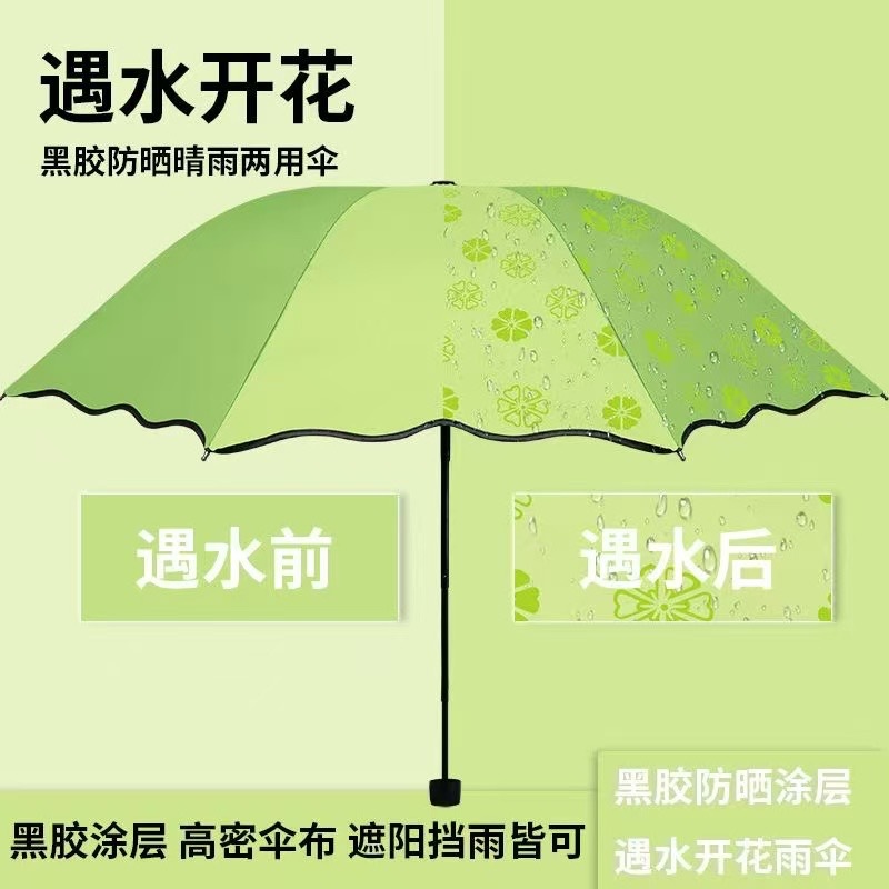 물에 닿으면 꽃이 피는 우산, 인터넷 인기 블랙글로스 우산, 햇빛과 비 모두 사용 가능, 자외선 차단, 남녀공용, 두꺼운 접이식 우산, 광고 인쇄 가능