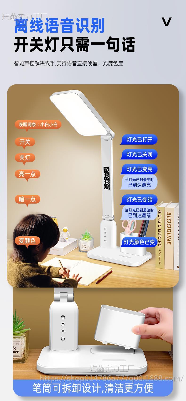 수직 상단 지능형 음성 책상 램프 눈 보호 학습 특수 학생 어린이 책상 쓰기 숙제 침대 옆 독서 근시 예방