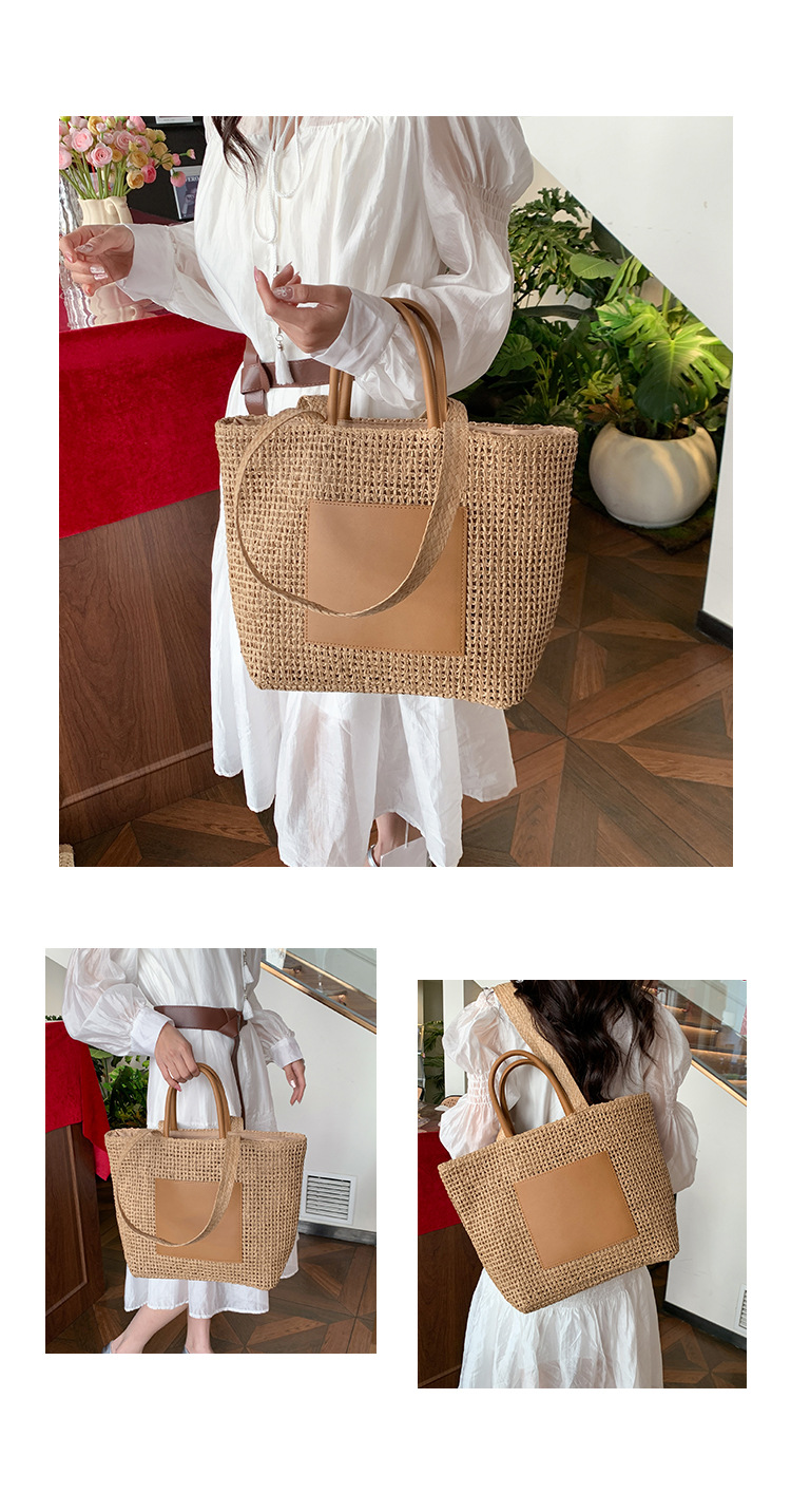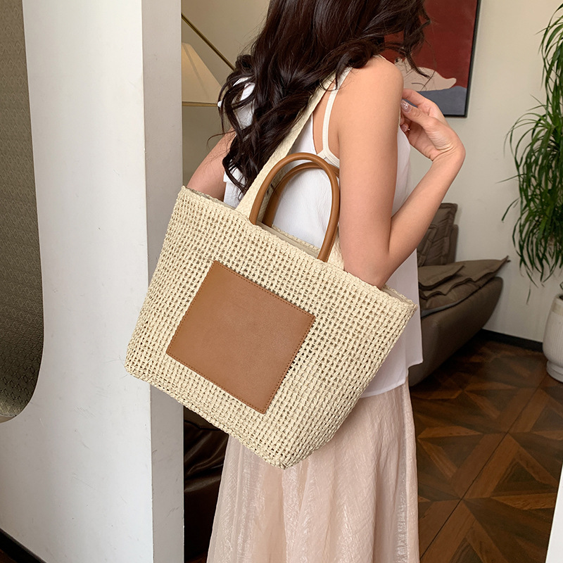 국경 도매 여성 대비 컬러 가방 2025 새로운 패션 어깨 가방 대용량 토트 백 스트로우 백