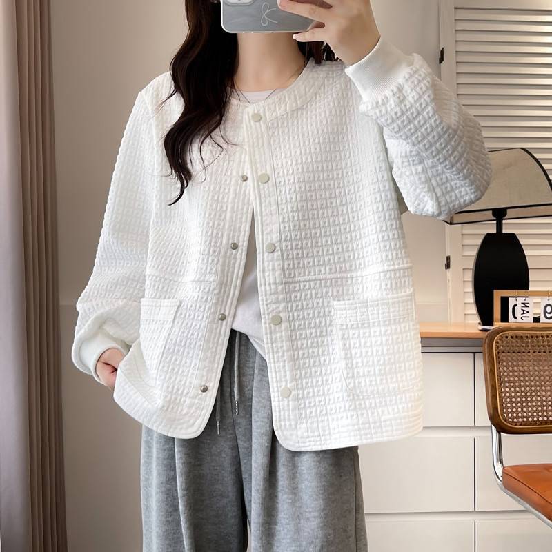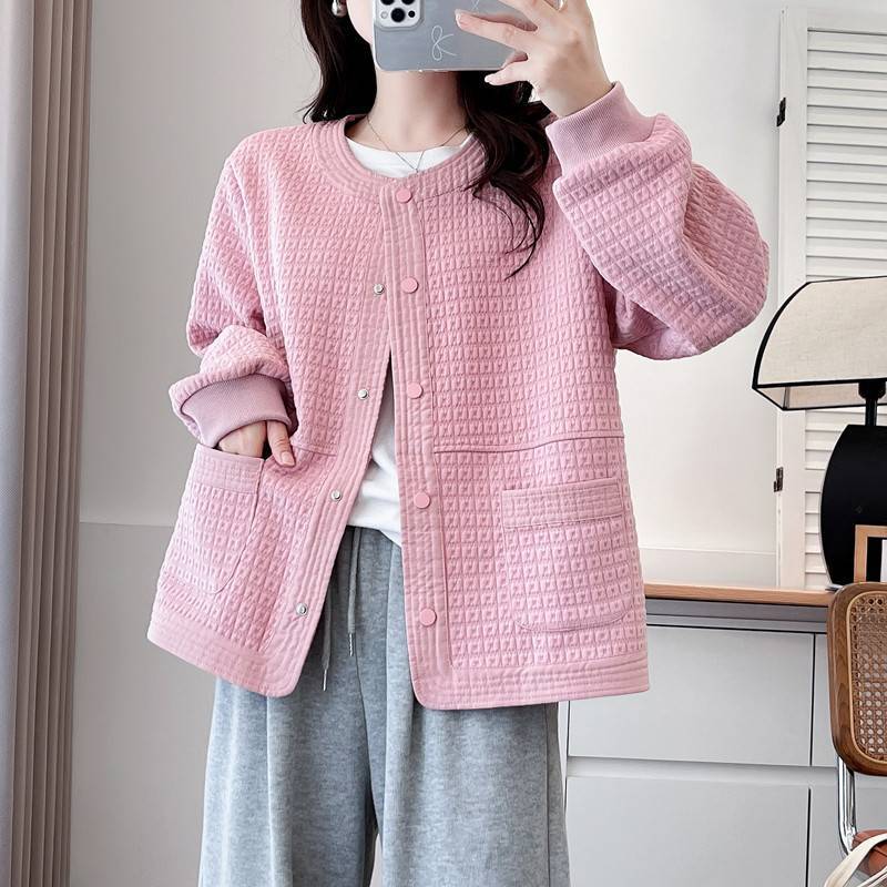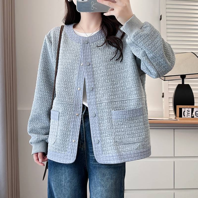 캐주얼 코트 여성의 플러스 사이즈 지방 200kg 봄 2025 새로운 패션 바느질 느슨한 작은 향기로운 스타일 코트스토어 가기