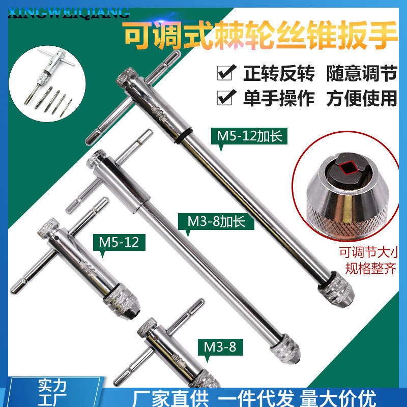 ✅M3-M8 조절 가능한 래칫 핸드 탭 렌치 M5-M12 앞으로 및 리버스 렌치 수동 태핑스토어 가기