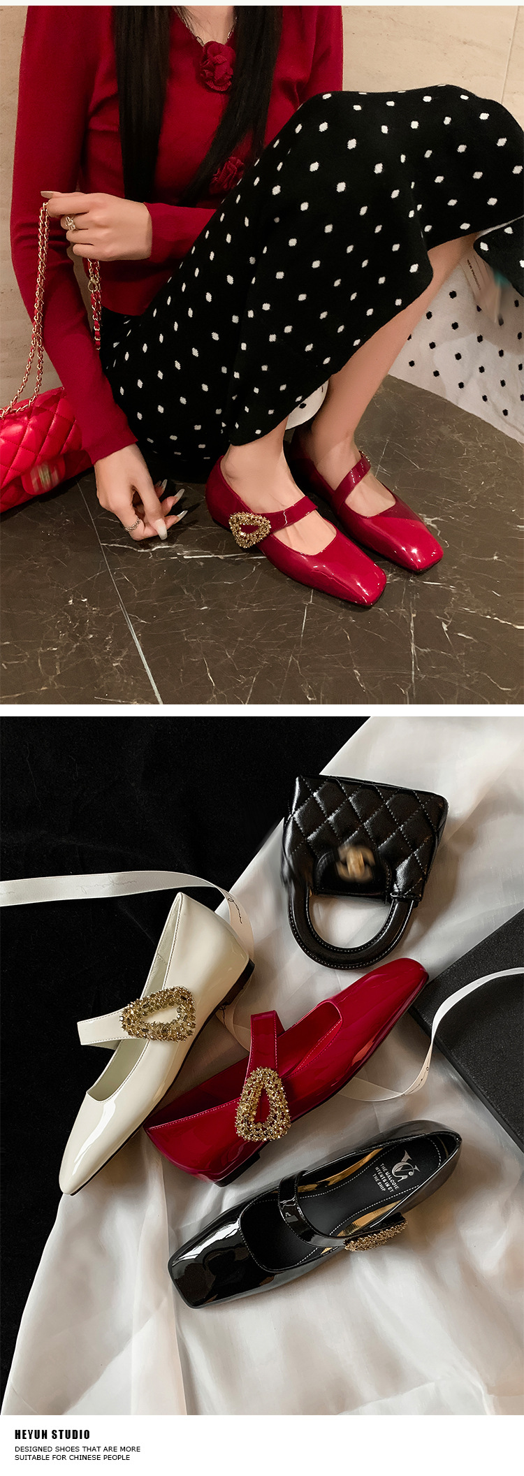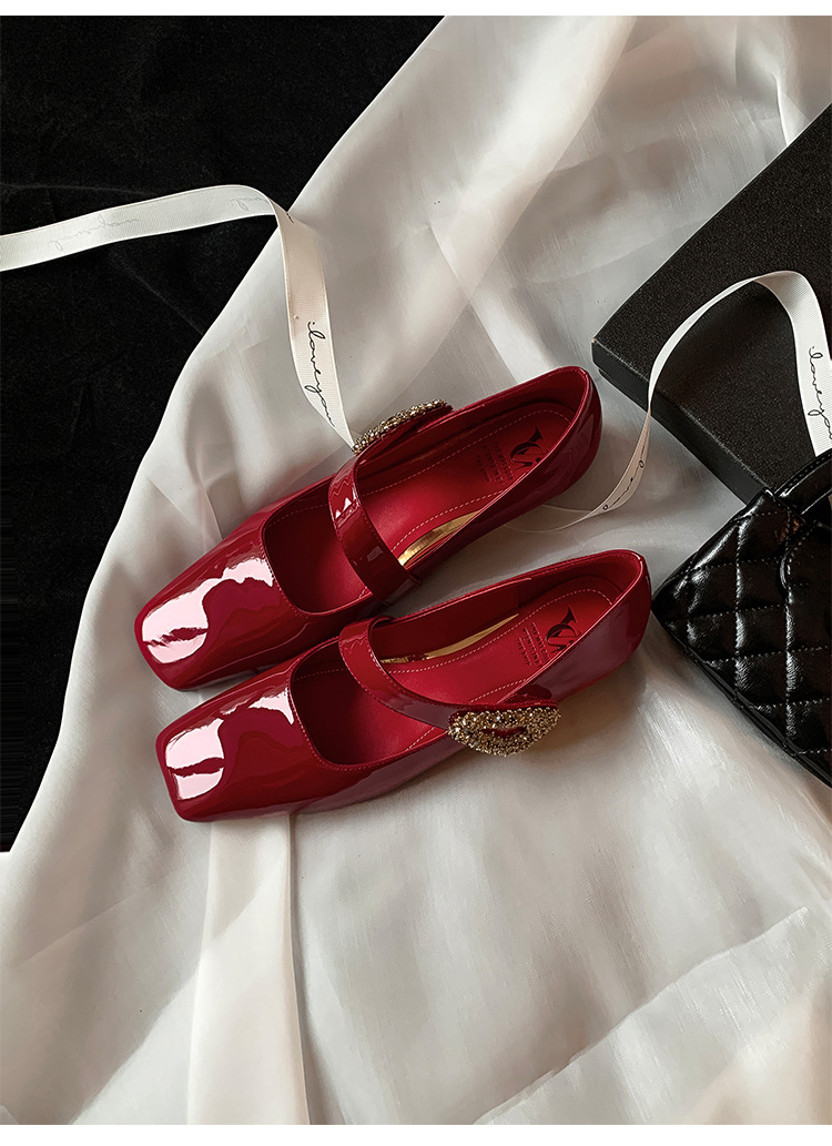 지진 홈 ~ 드림 오니! 메리 제인 연회 신발과 함께 달콤한 다이아몬드 버클 신발 프렌치 스퀘어 발가락