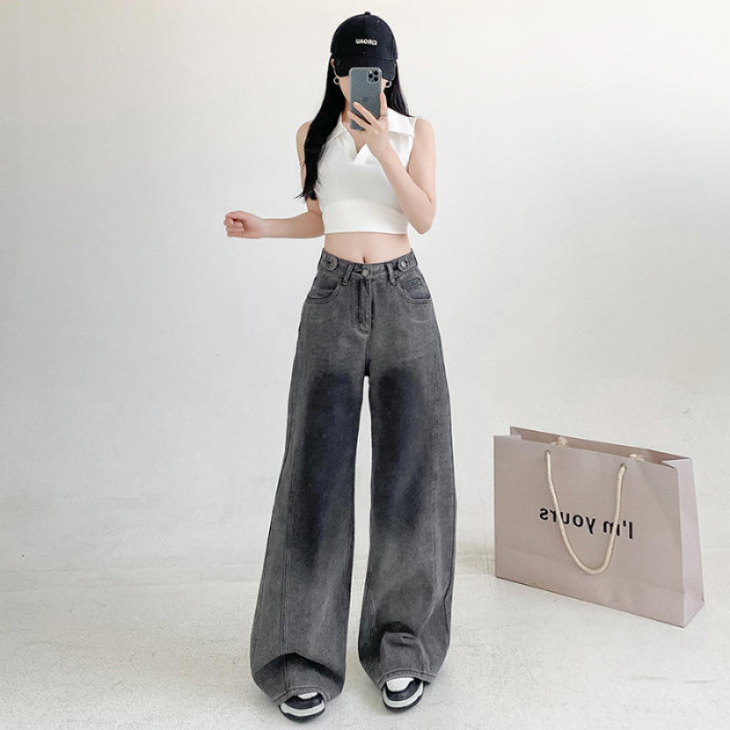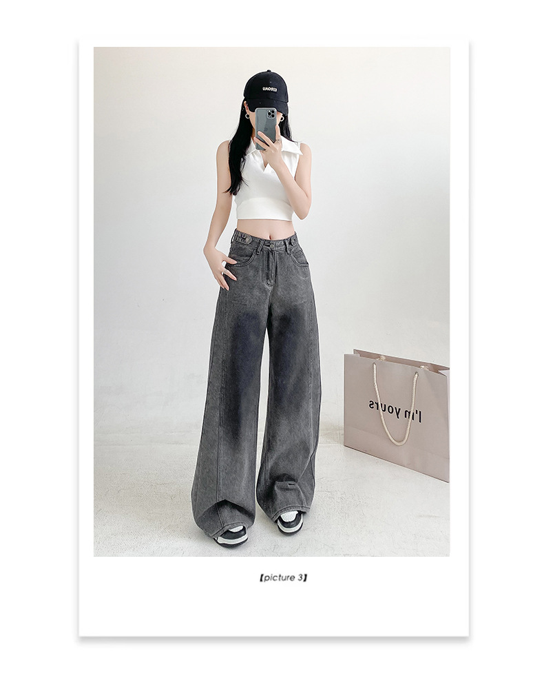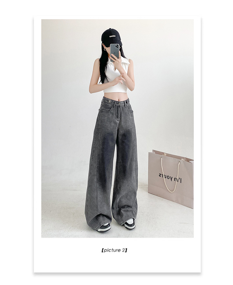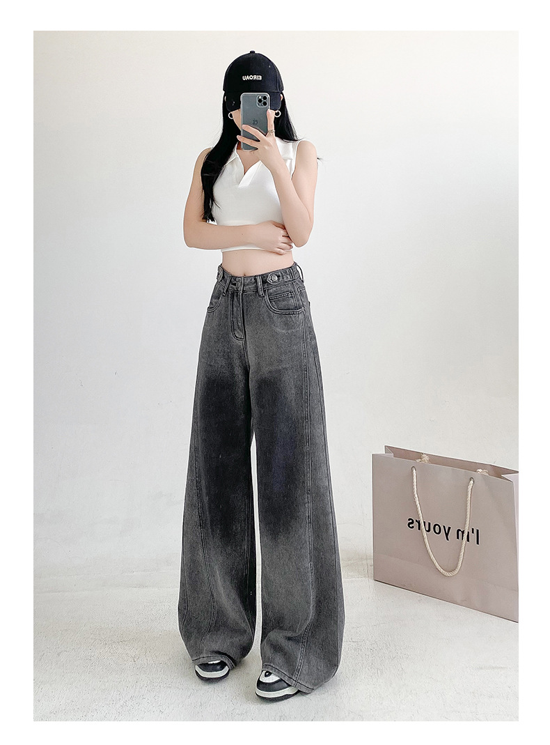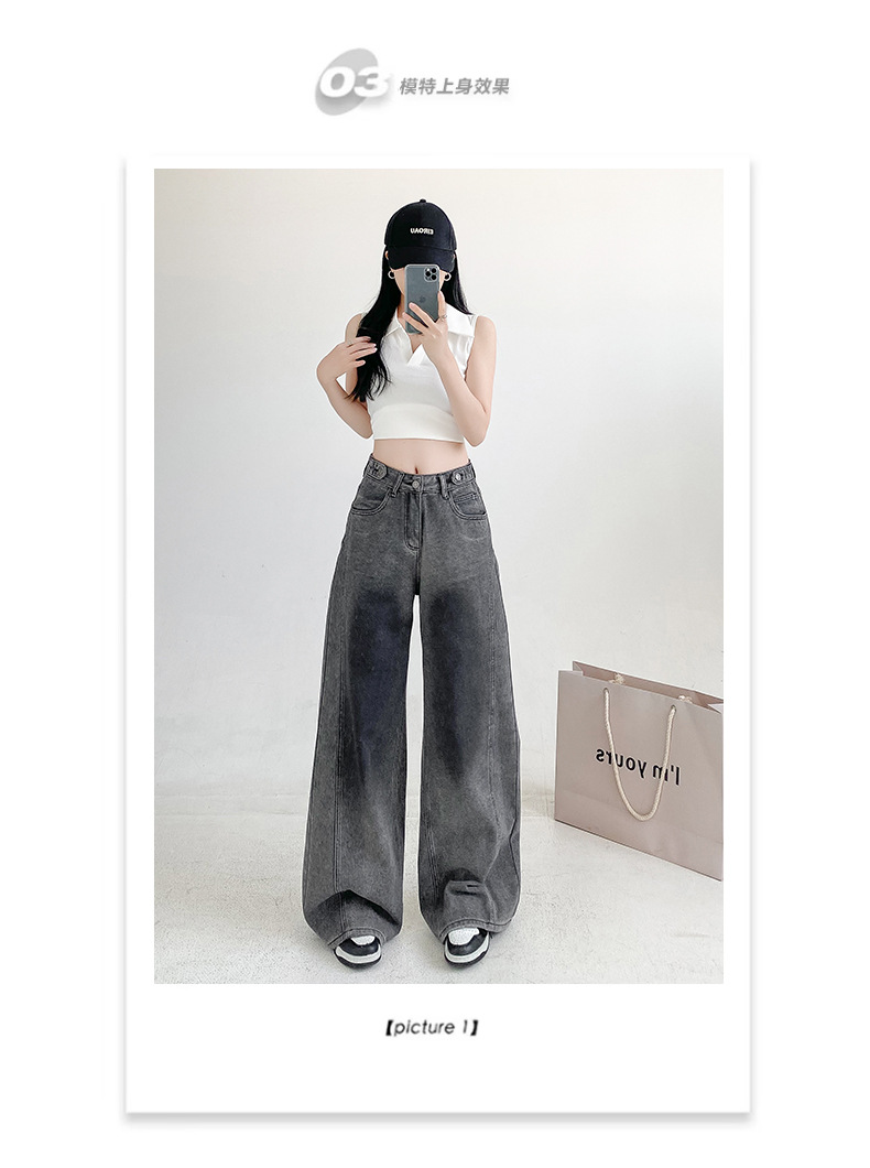 봄 2025 새로운 미국 스타일 레트로 틈새 그라디언트 곡선 디자인 센스 청바지 여성용 스트레이트 바지스토어 가기