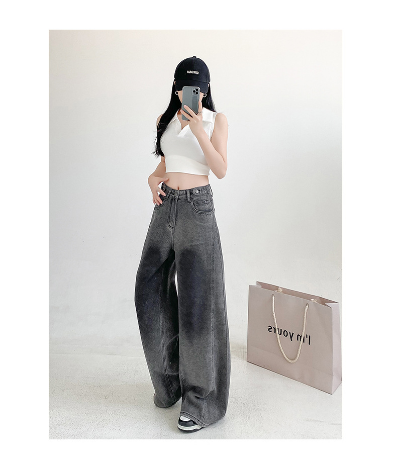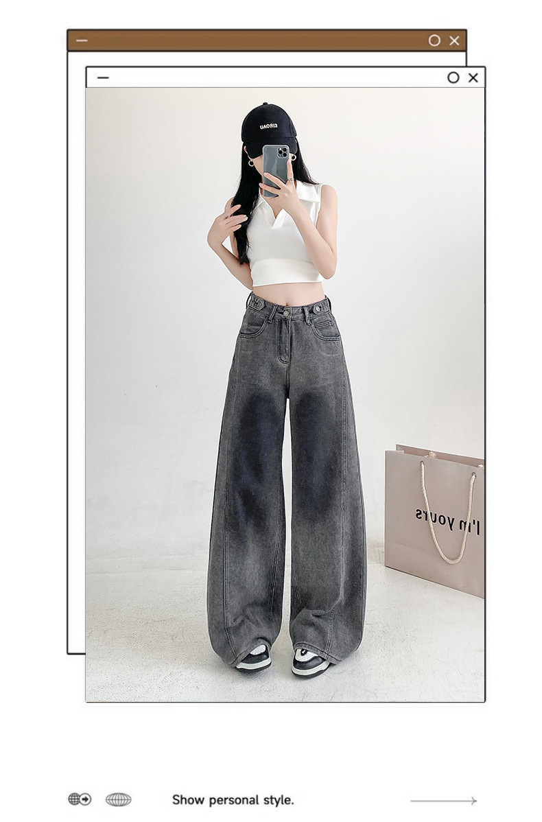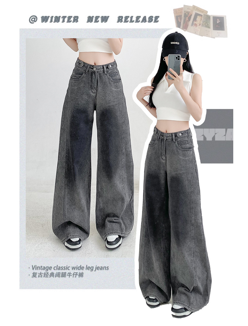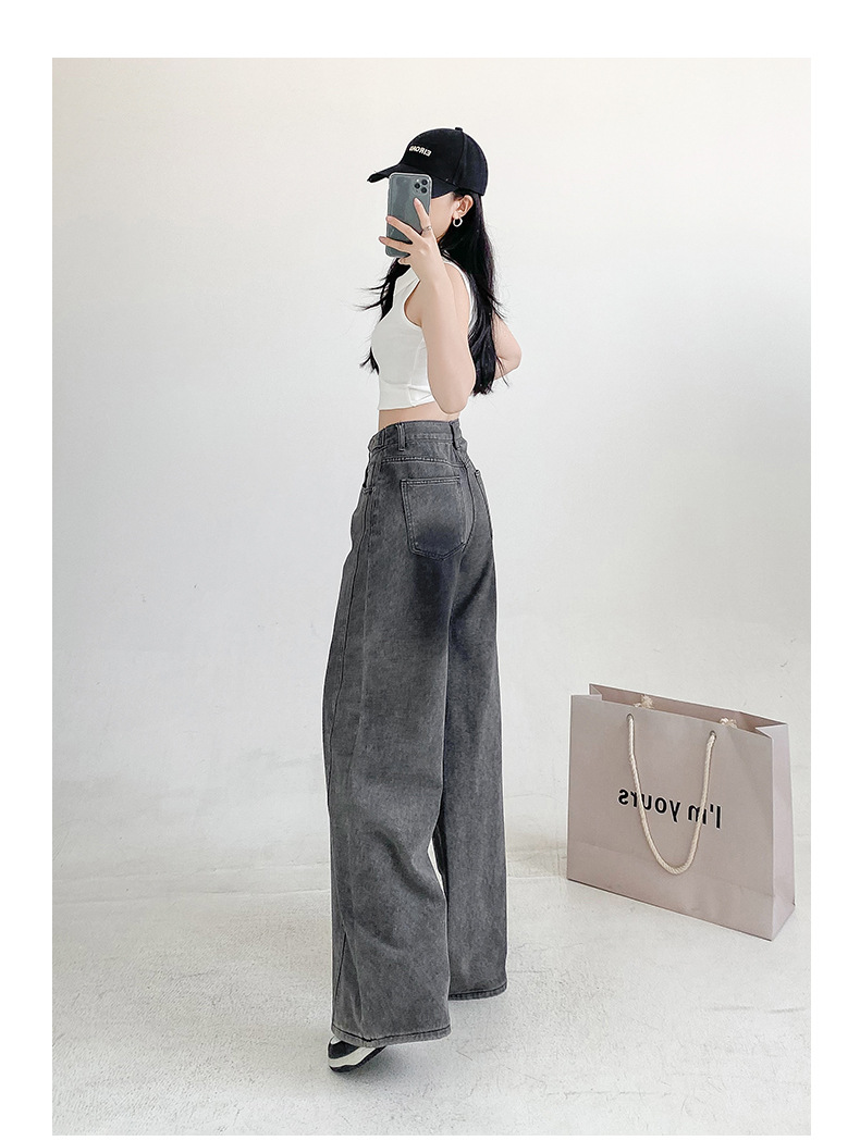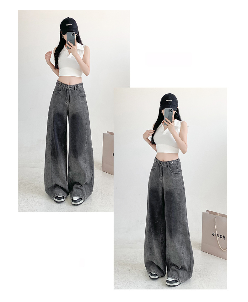 봄 2025 새로운 미국 스타일 레트로 틈새 그라디언트 곡선 디자인 센스 청바지 여성용 스트레이트 바지스토어 가기
