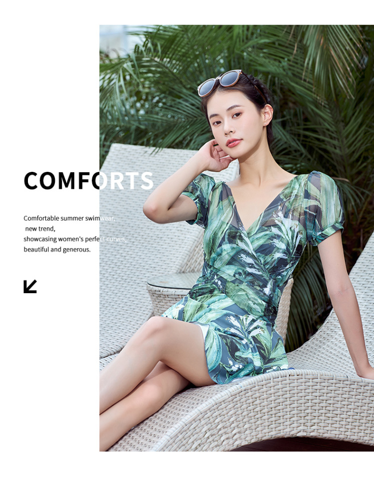 수영복 여성용 2024 새로운 하이 엔드 원피스 스커트 벨리 커버 슬리밍 보수적 온천 해변 휴일 수영복