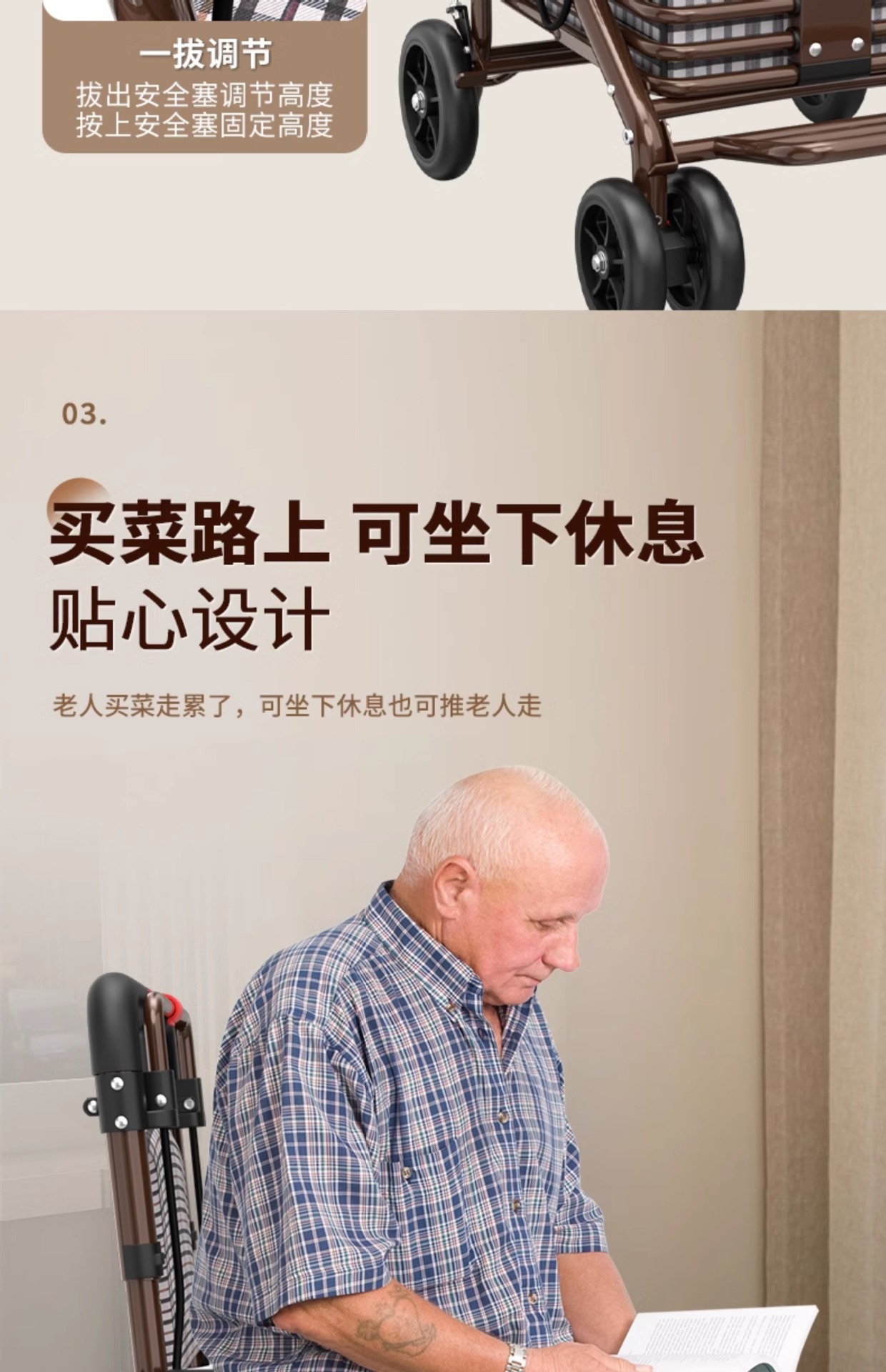 인터넷 유명인 노인 푸시 스쿠터는 카트 접이식 라이트 쇼핑 카트를 밀 수 있습니다스토어 가기