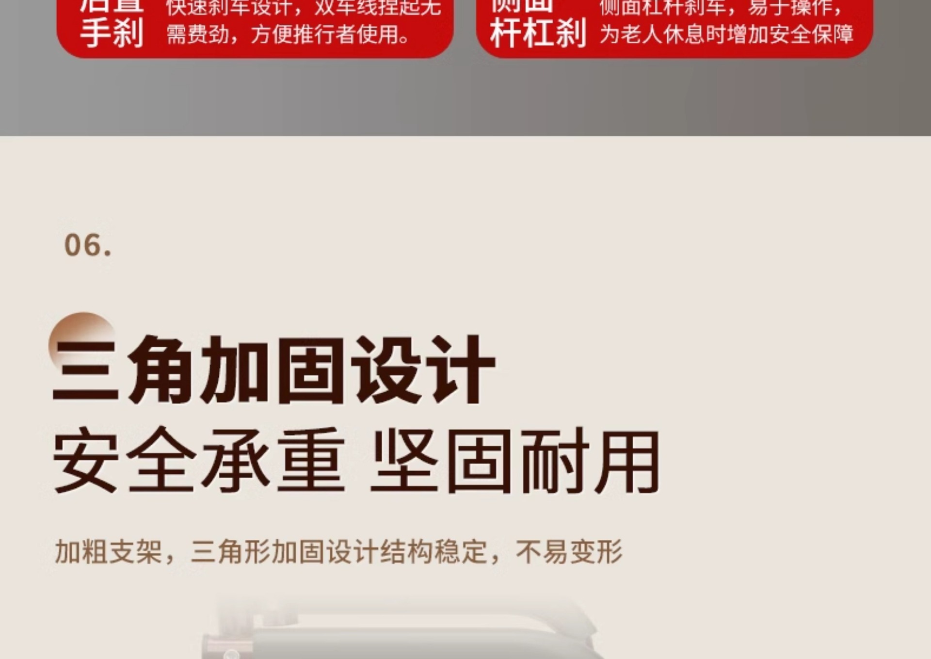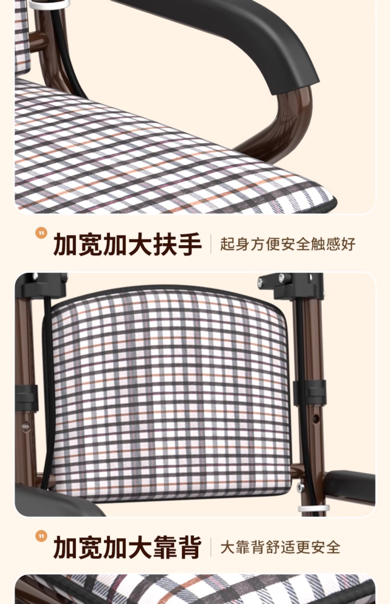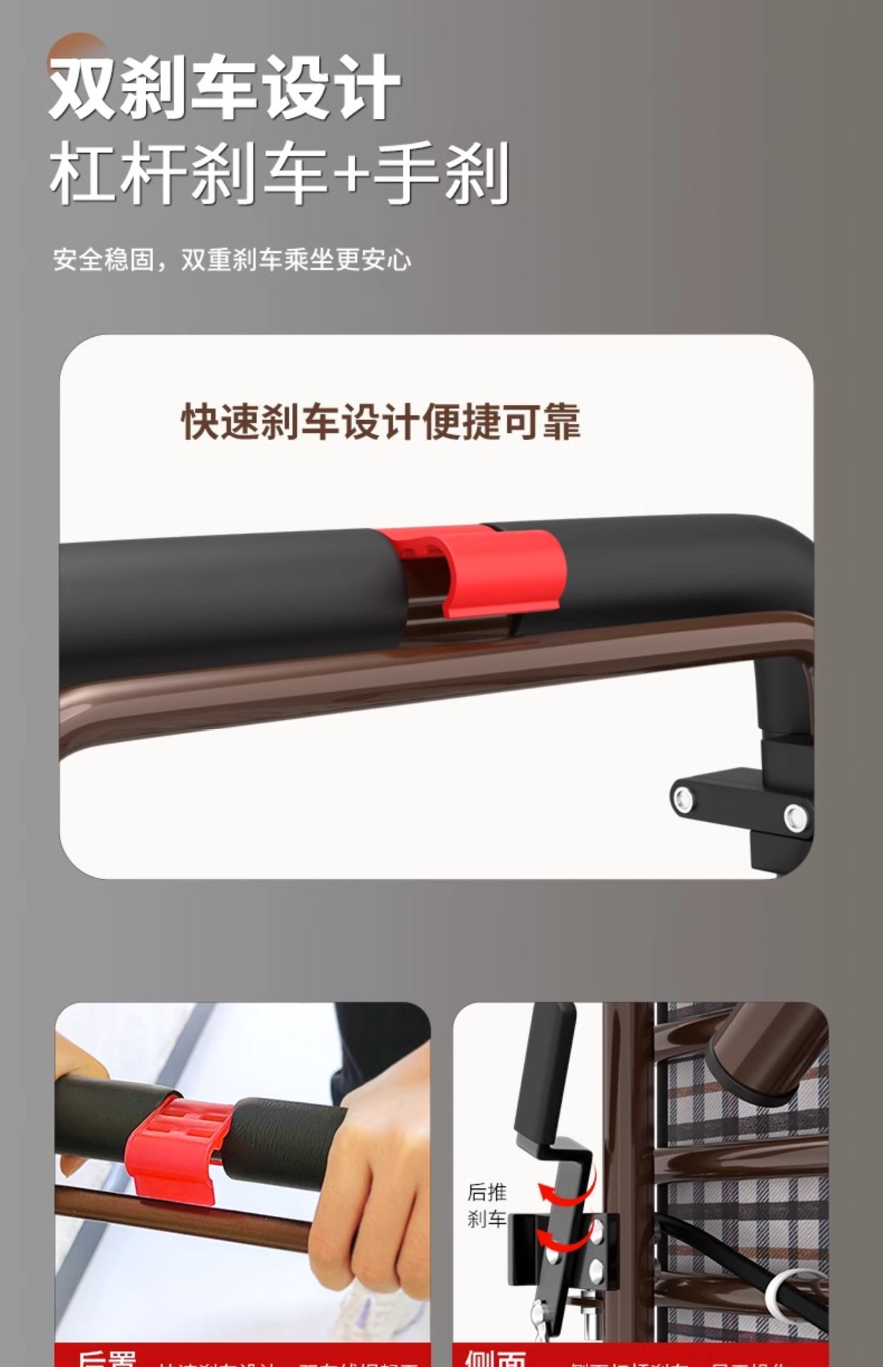 • 새로운 강화 - 대형 등받이 단일 휠 핸드 브레이크 + 페달 그리드