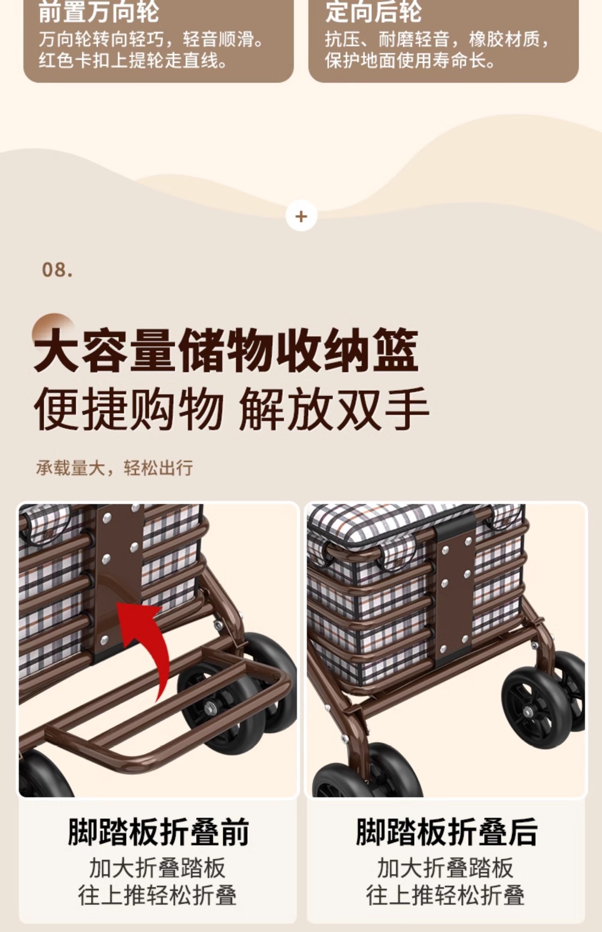 인터넷 유명인 노인 푸시 스쿠터는 카트 접이식 라이트 쇼핑 카트를 밀 수 있습니다