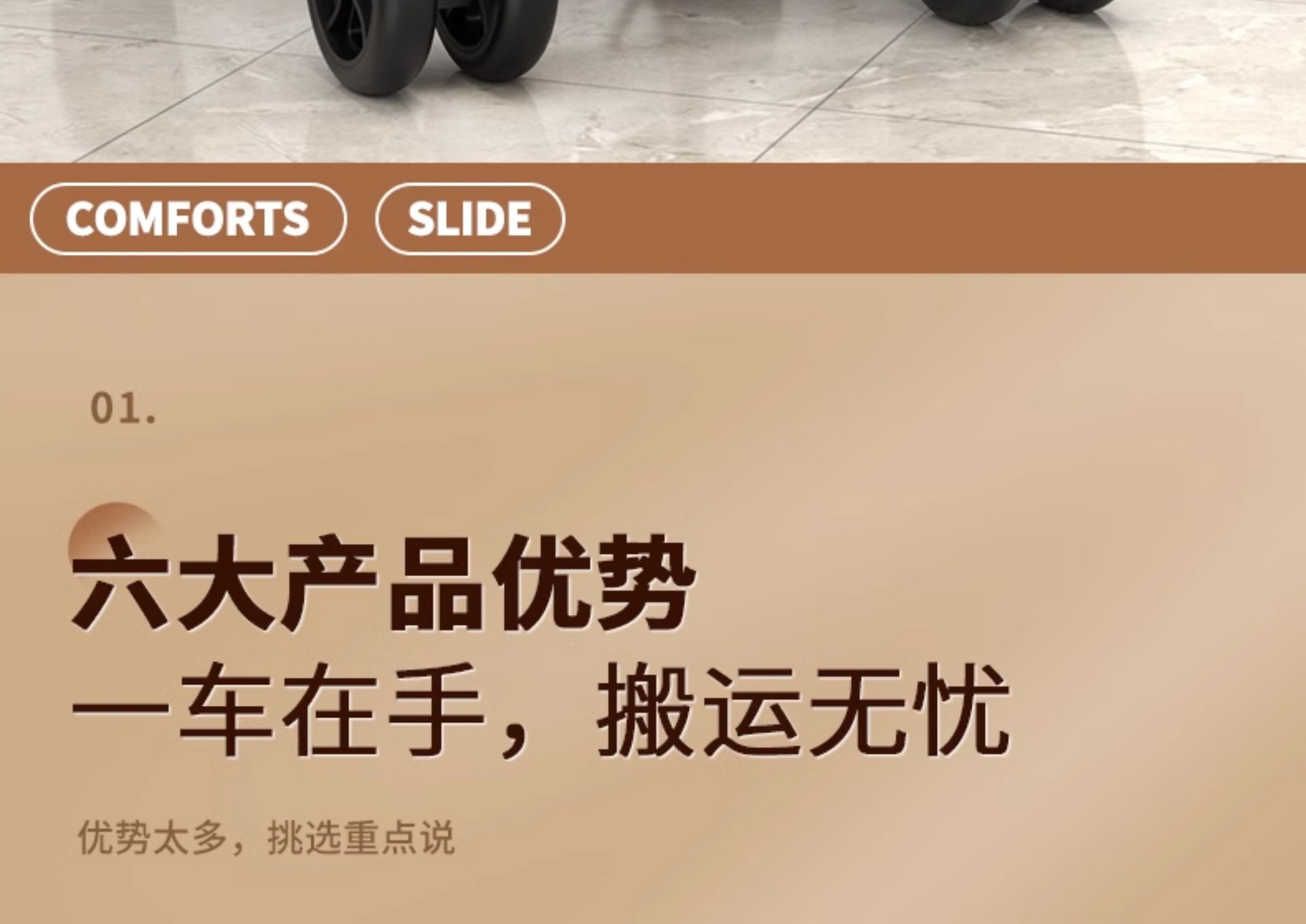 • 새로운 강화 - 대형 등받이 이중 휠 핸드 브레이크 격자 무늬