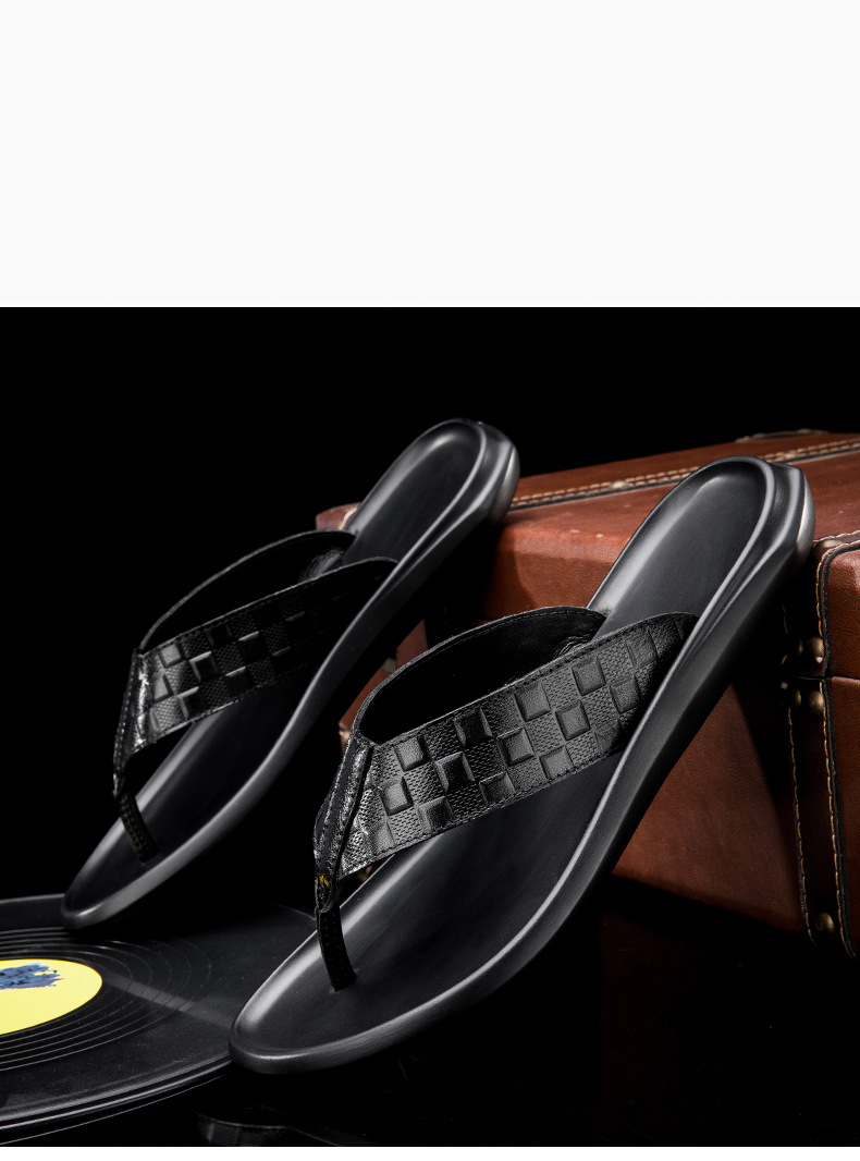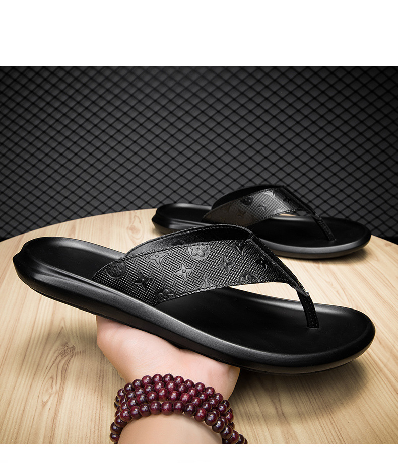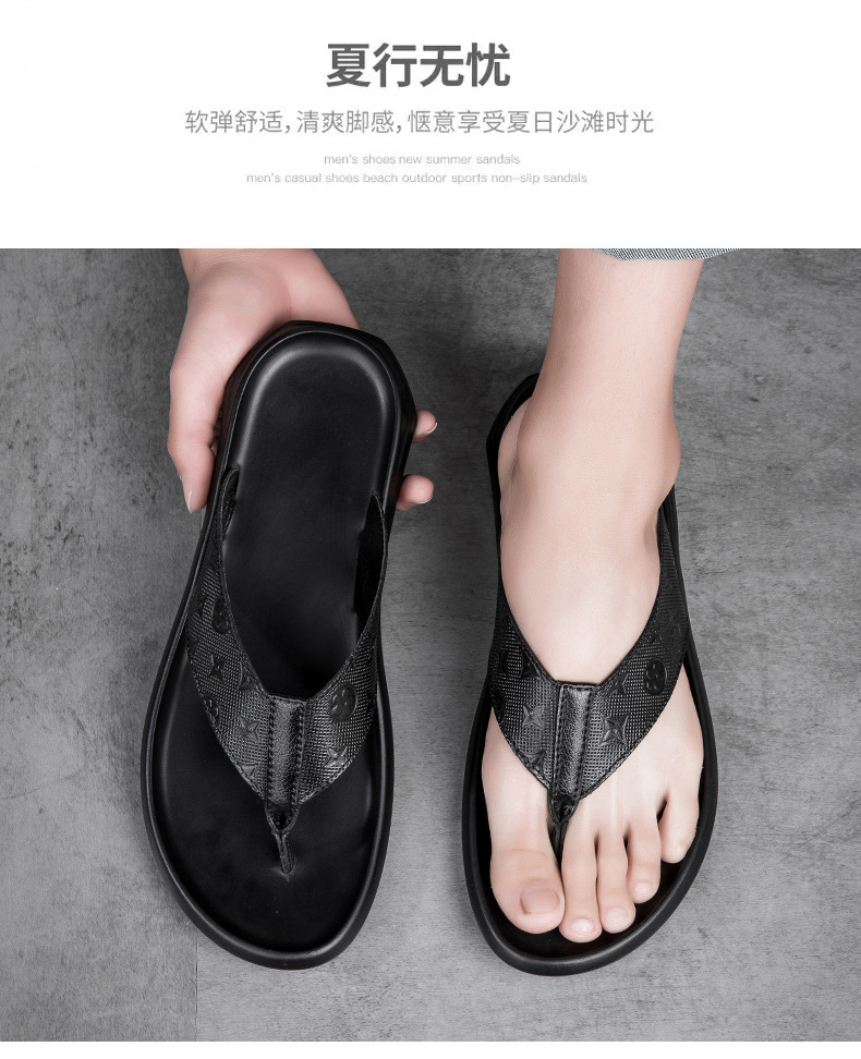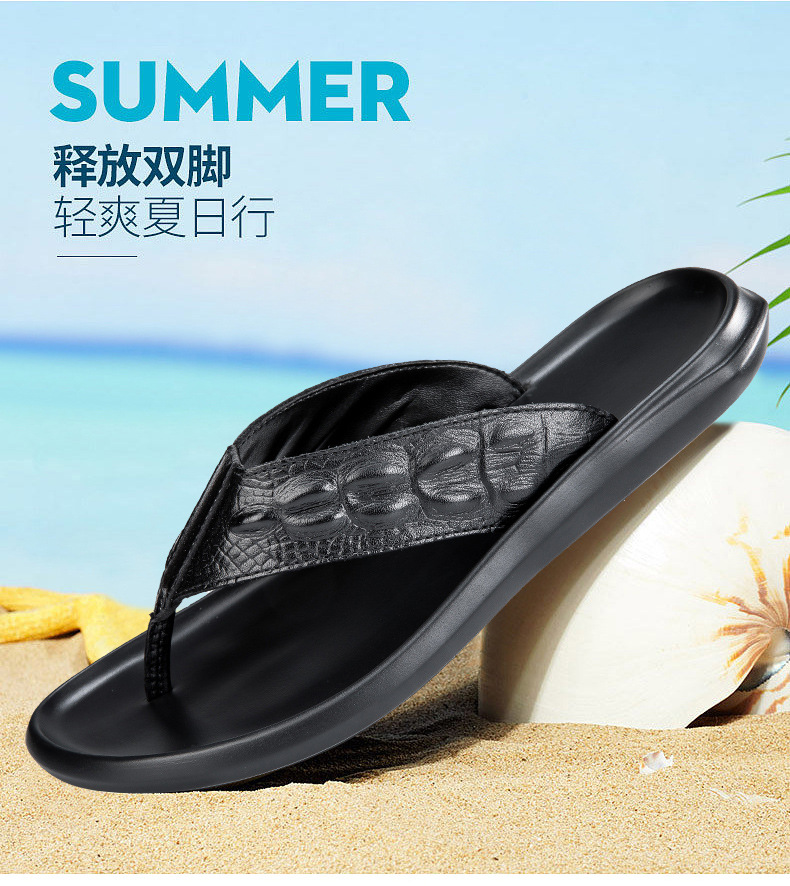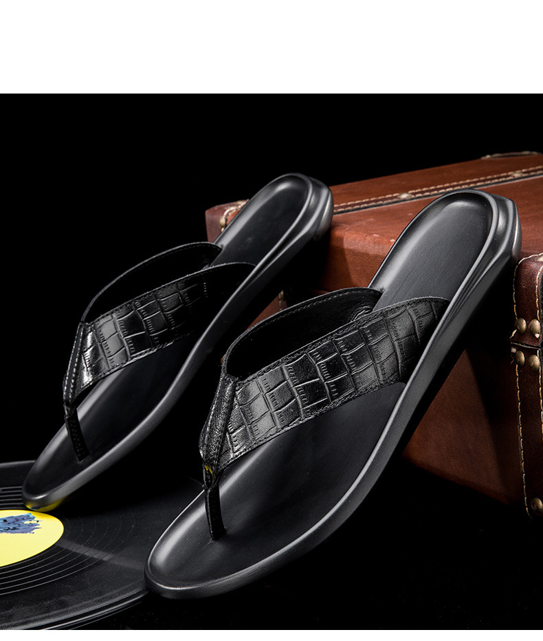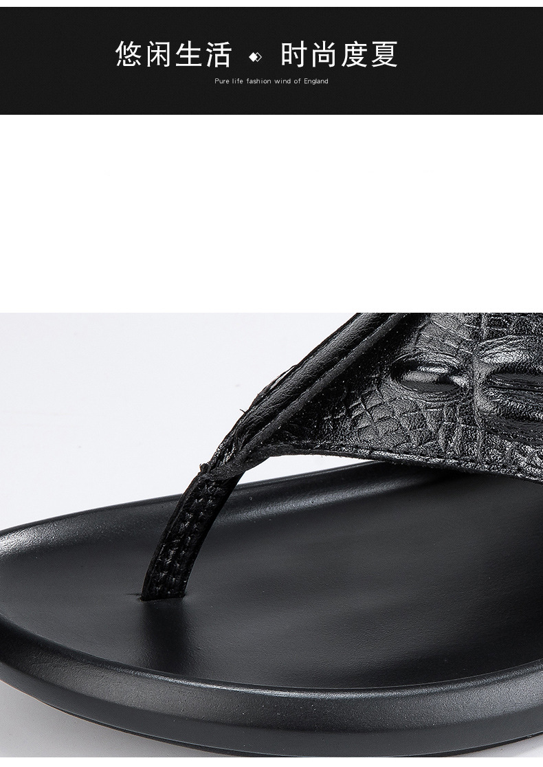여름 새로운 남성 비치 플립 플롭 남성 야외 통 발가락 통기성 샌들 양각 악어 패턴 Cowhide 캐주얼 슬리퍼