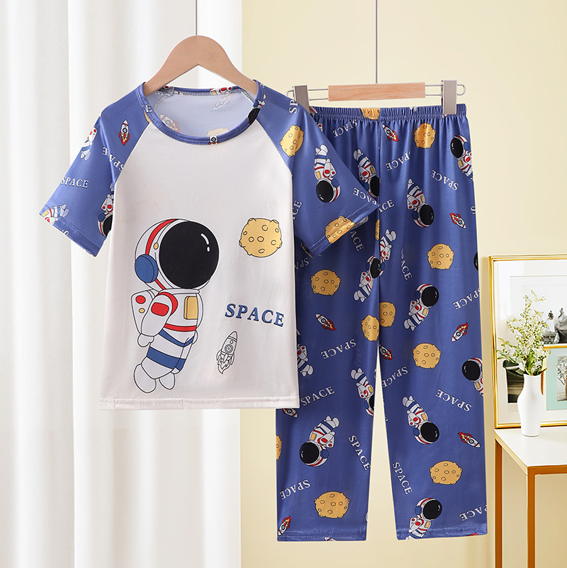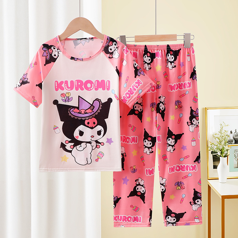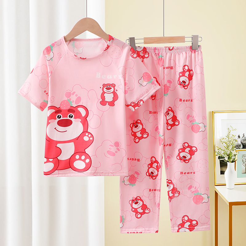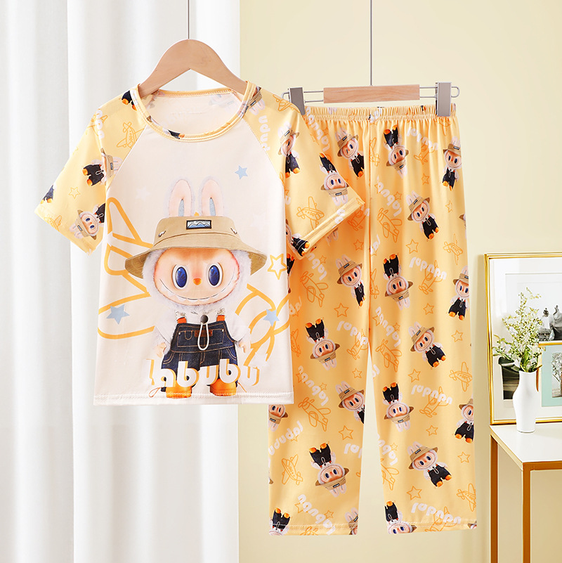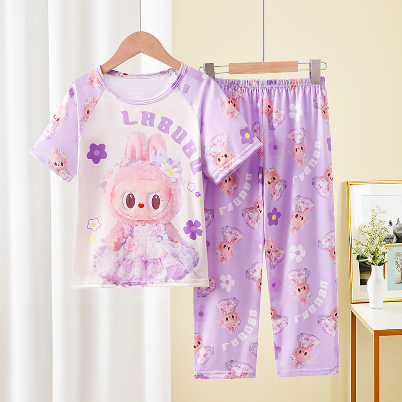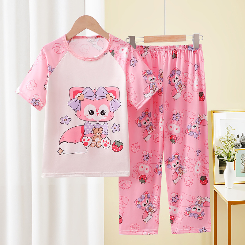 Kulomi Girls 'Pajamas 여름 반팔 바지 소년 얇은 대형 어린이 아기 에어컨 홈 의류 세트
