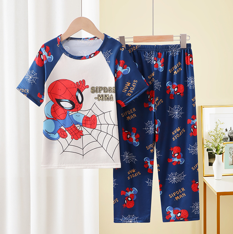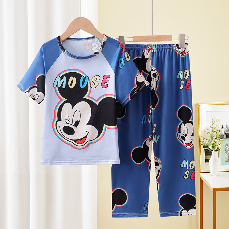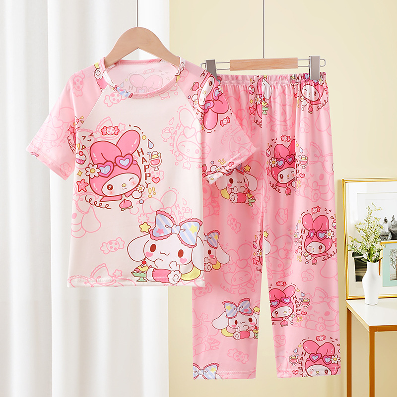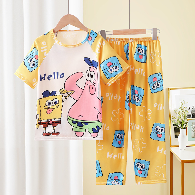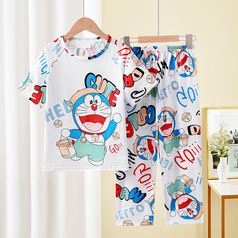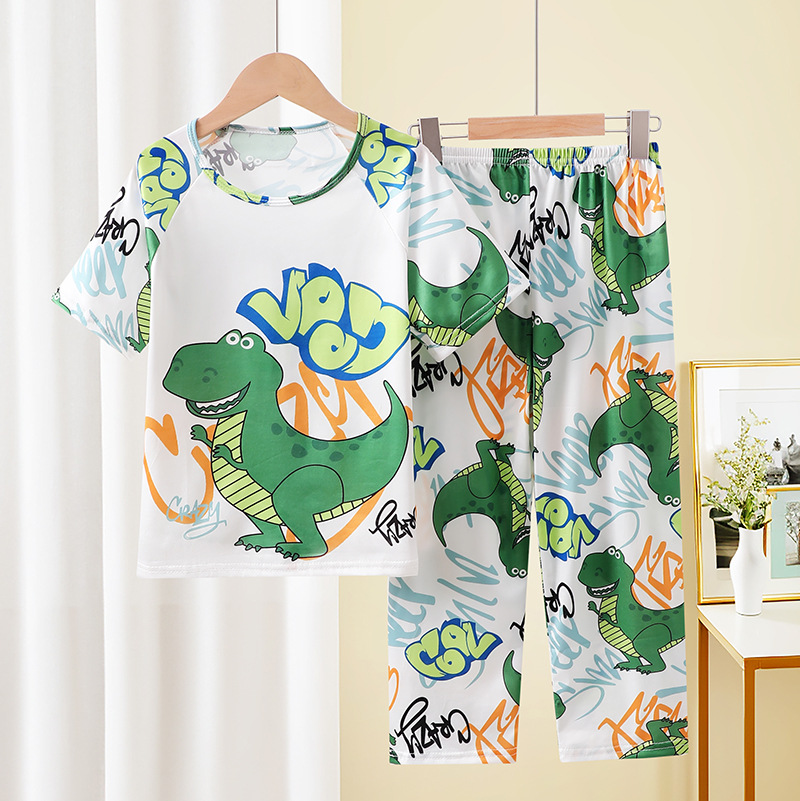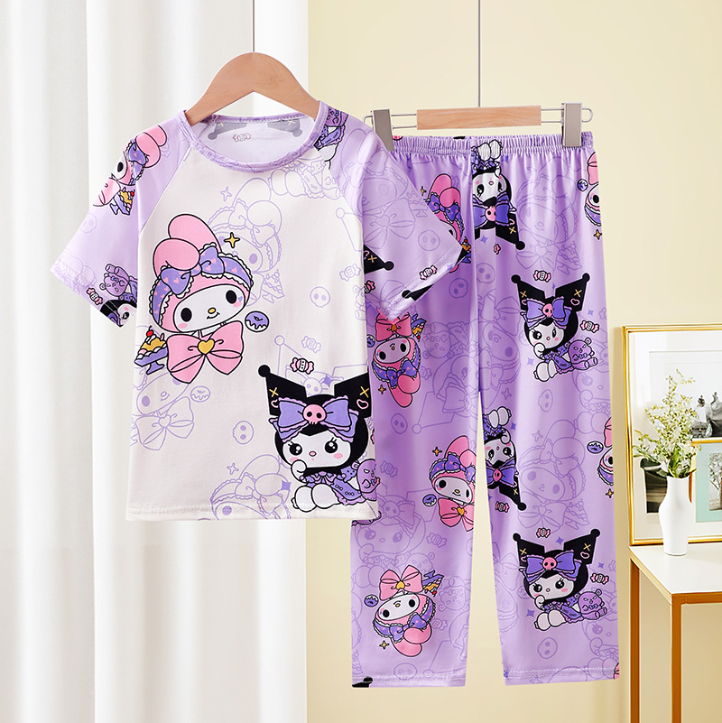Kulomi Girls 'Pajamas 여름 반팔 바지 소년 얇은 대형 어린이 아기 에어컨 홈 의류 세트