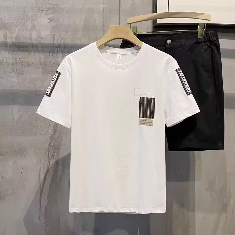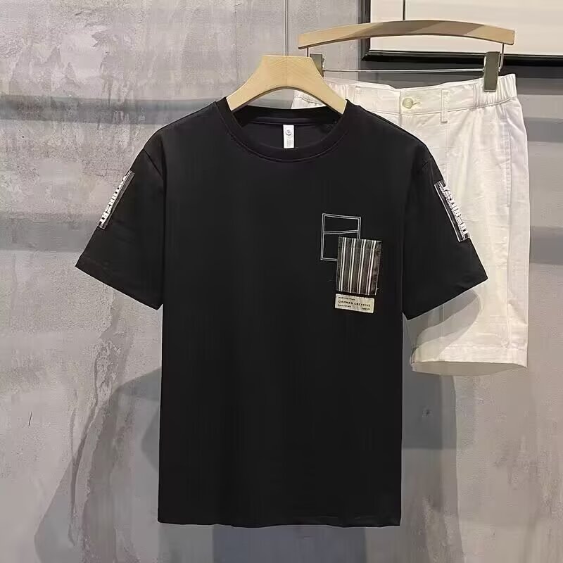 여름 남성 스티칭 반팔 티셔츠 얇은 2025 새로운 패션 슬림 핏 하프 슬리브 느슨한 탑 플러스 사이즈 도매스토어 가기