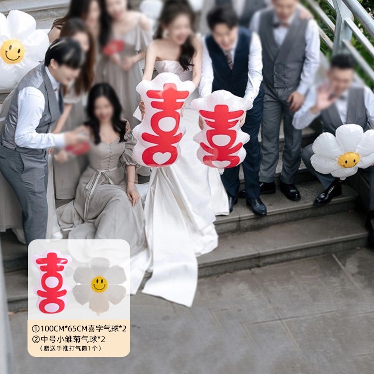 • 밝은 노란색 해피 풍선 + 작은 데이지 키스