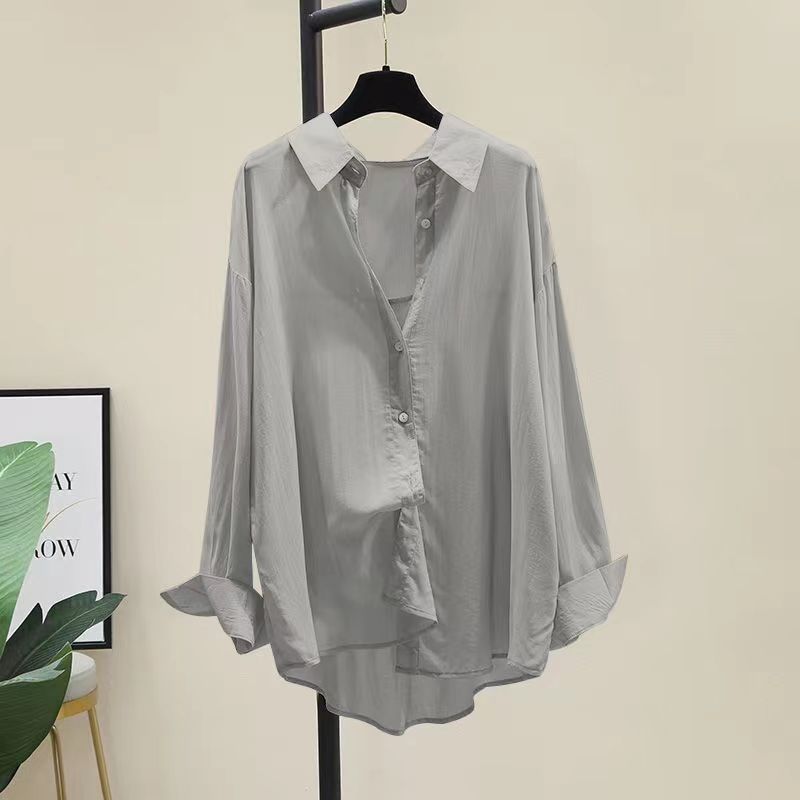 드래핑 텐셀 코튼 셔츠 여성의 봄과 여름 새로운 한국식 루즈 패션 올 매치 디자인 긴팔 선 스크린 재킷스토어 가기