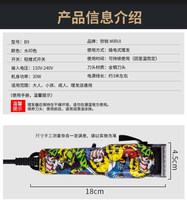 고출력 유선 이발기, 성인용 전기 이발기, 미용실 이발기, 플러그인 무소음 디자인